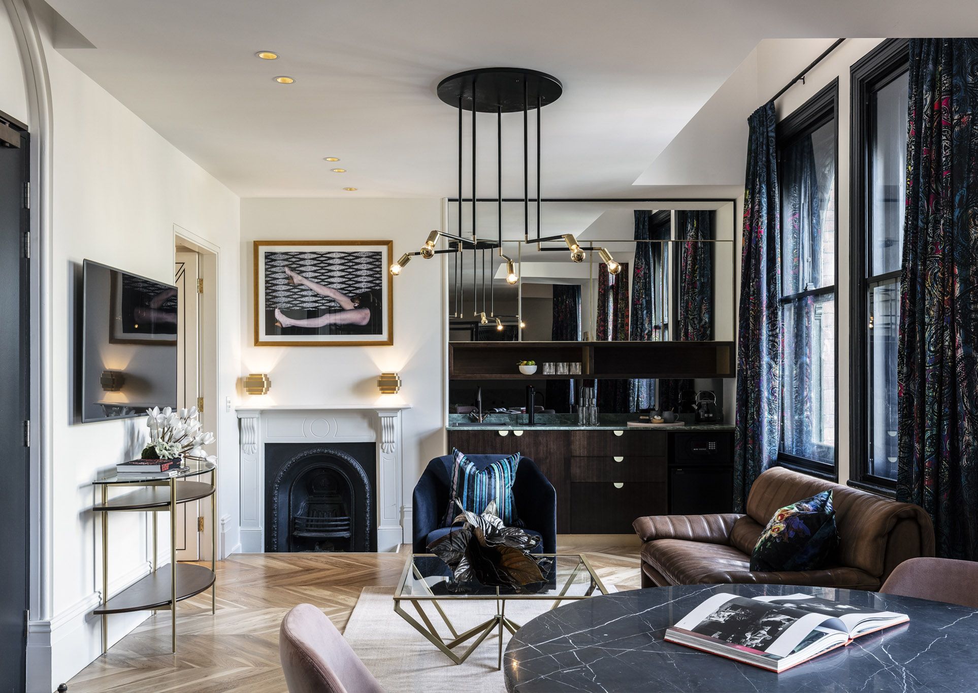 Beautiful botanical wallpapers and oil portraits line hallways that lead up to the guest rooms, with a surprise pop of character or color around every corner. From tiny crash pads that are perfect for a one-night solo stay to the Big Albion suite with Gothic windows and heritage archways, there’s a variety of guest room types and sizes. Plush velvet chairs, boldly patterned curtains and cushy, cozy beds make each space feel distinct. Traveling with your road crew? Snag the Big Albion so you’ll have a lounge room and dining space to gather in. Put your friends up in a couple of Master suites with huge bathtubs and skylights just above.