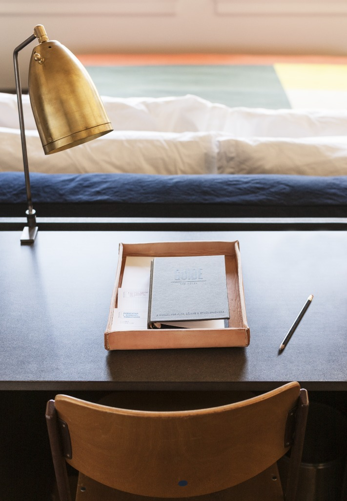 When we were invited to the Press opening of the new Ace Hotel, in downtown Los Angeles, we knew we would be greeted by the pearly gates of design heaven. Even Ace Hotel and Commune Design (the design house behind the new hotel) describe the aesthetic as the following "a singular experience, a collection of architectural and design references piled on top of one another. Gropius' office and the Bauhaus, Viennese cafes, Mission-style churches, Luis Barragan, Parisian modernism, Piet Mondrian, and Adolf Loos share space with each other, anod to the irreverence and "no holds barred" design attitude of Los Angeles in the 1920's and 30's" There is so much delightful design going on at this new hotel/venue space that JUST OPENED in January 2014, that it was hard to condense into a singular report. But alas, here we go...