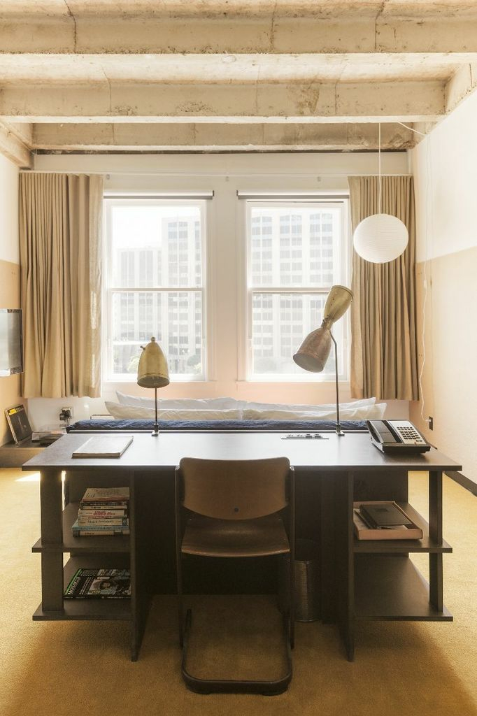 As mentioned, Ace Hotel in downtown Los Angeles just opened it's doors in January of 2014, but it’s been able to fluidly integrate itself into the city of LA's various attractions, including beautiful artwork, inspiring amateur musicians, and theatric fanfare. The gothic exterior has been given the respect it deserves so it remains an outward attraction to all passersby, while the interior has been renovated to fit a concrete-minimalistic décor. The rooms are intimate and flow in concept from floor to floor; the minimal, yet artsy design transfers itself throughout the modern Parisian lobby, elevator vestibule, coffee bar, restaurant, and the mezzanine lounge. Currently, there are 189 rooms with the presidential being the largest.