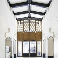 THEATRE: Originally built in 1927 in a Spanish Gothic style, this venue space is chock full of history and available for concerts, weddings, dance parties, celebrations, private screenings, corporate events, and social gatherings. The original murals and plaster work inside the Theatre were restored along with the theatre seats that were reclaimed and reupholstered offering a glimpse back into the beauty of yesteryear’s architectural inspiration. To retain the Hollywood glamour, a new Deco-inspired ticket booth façade was created. The 2,300 square feet of lobby space boasts a 35' ceiling, 1,600 seats and a 783 square foot event space. The ornate open balcony and mezzanine overlook the expansive theatre and stunningly detailed murals depict the legends of film's Golden Age. Wow Factor: The thousands of tiny mirrors both covering and glimmering from the vaulted ceilings.