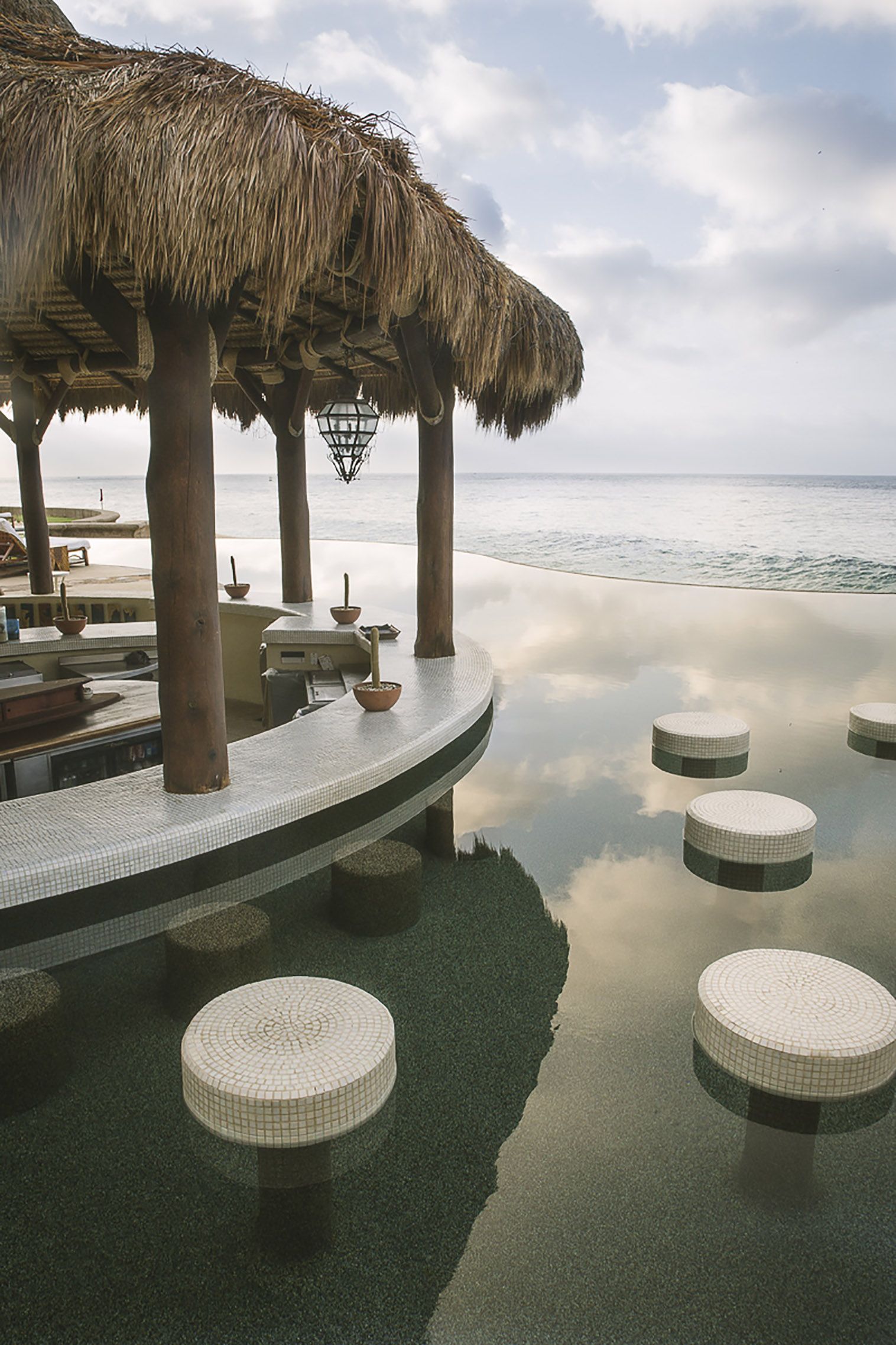 To get to the resort, we drove through a carved out tunnel dimly illuminated by torches and glittering chandeliers casting whimsical shadows onto the walls. The experience is fast, the tunnel is 900 ft long but in that short span of time we felt like voyagers from a bygone era on an exciting adventure - we felt the childlike excitement you get when you sit on a ride at Disneyland. We also felt the enormity of magic that was accomplished to bore through this gigantic piece of rock. With each fleeting moment we became more and more entranced by this unexpected cave and whoooosh! We were out on the other side, whacked by the sun, the power of the beautiful sparkling ocean and whitewashed resort walls. Dahhhhling, we had arrived. The bright, airy feel and the well-dressed caballeros greeting us with ice-cold margaritas were such a perfect stark contrast to the mysterious cave we had just exited.