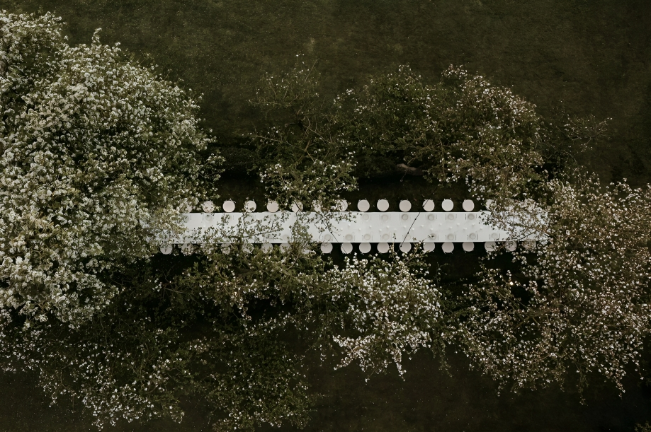 Nobody does a dinner party like Tabloo Margot. We’ve seen her party on a tennis court. We’ve seen her create a futuristic forest of light at her viral HALO event. And with Blossom, the gathering she hosted two years ago under blooming apple trees in Zomergem, she proved once again that dinner can be magic. Set on a private property near Ghent during peak blossom season, Blossom wasn’t just a dinner—it was a love letter to spring, sensory detail, and the simple act of coming together. Even years later, this gathering is still being passed around Pinterest boards and group chats. Why? Because it didn’t just look good—it felt good. Like a secret garden party from a storybook, with tractor rides, cocktails in apples, and the longest dinner table you’ve ever seen.