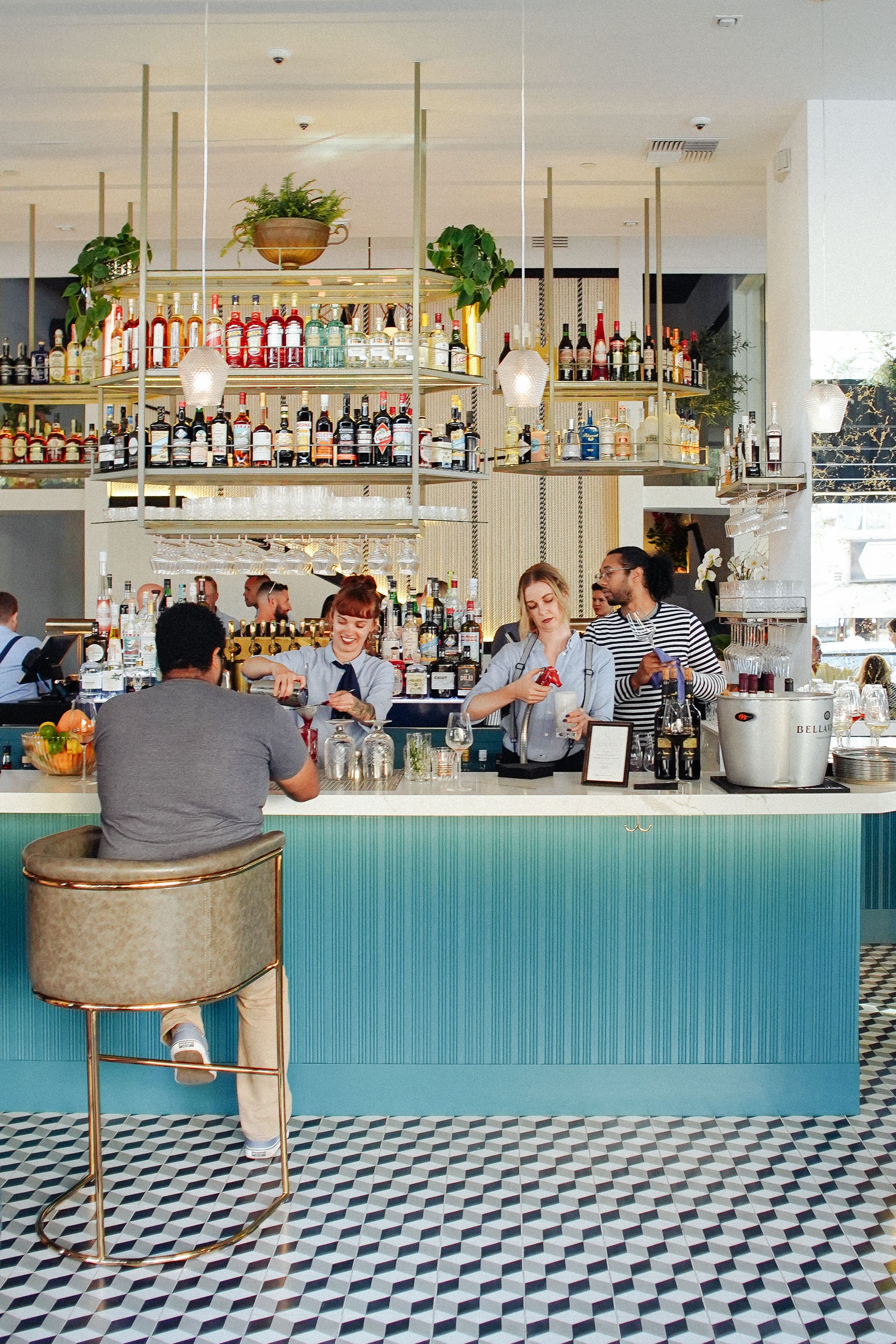 You could describe any number of restaurants as bright and airy but at Il Dandy, bright and airy means something more. Half of the space's walls are windows – floor-to-ceiling windows – while the rest of the restaurant is bathed in white and accented by blues and greens. The details throughout are obviously luxurious: materials like velvet, marble and brass add depth to the space while whimsical wallpaper and intricate light fixtures bring interest to the otherwise clean and modern venue. Inside tip: You know we love a good bathroom selfie moment, and Il Dandy lives up to our tough mirror pic standards.