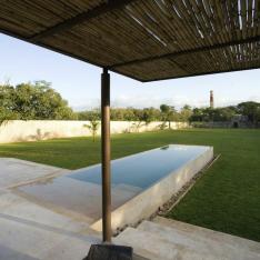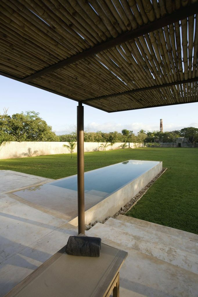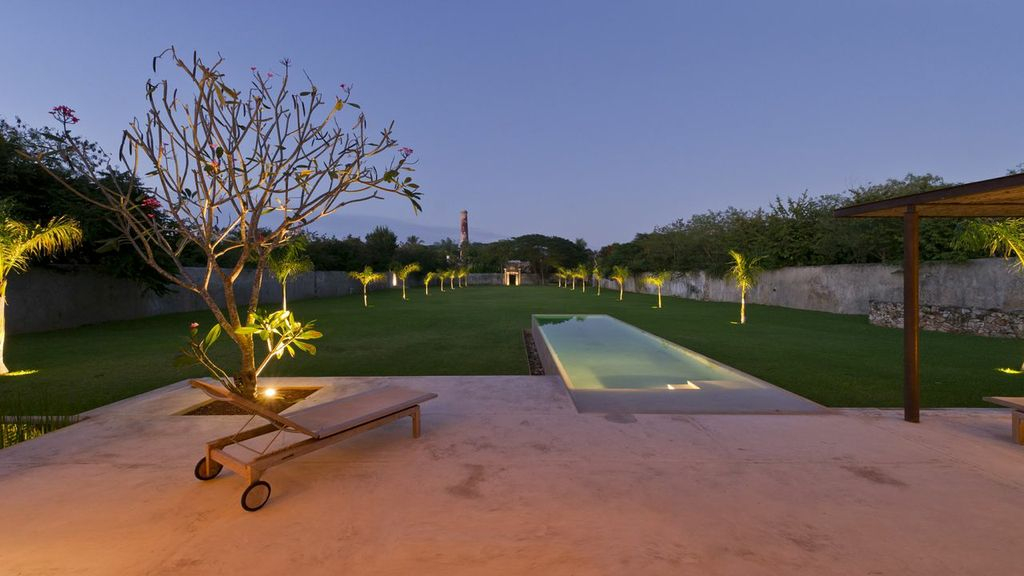 Casa Sisal is the third building in the Hacienda Sac Chich, Casa de Maquinas trifecta. Want a little more privacy from the rest of your guests? It's surrounded by more lily ponds as well as 2 acres of henequen drying fields and enclosed by 10-foot walls creating its own private, delicious world. Walk out of the living area and you'll find a 3-sided Infinity pool (yes, another one!), palapa and patio. High entryways and ceilings add to the grand feeling of open space and heighten the drama. As special and relaxing as the property is at night, 175 outdoor architectural lights coupled with the star-gazing platform make this property truly sing at night.
