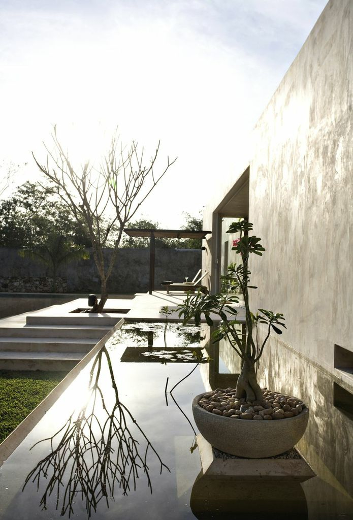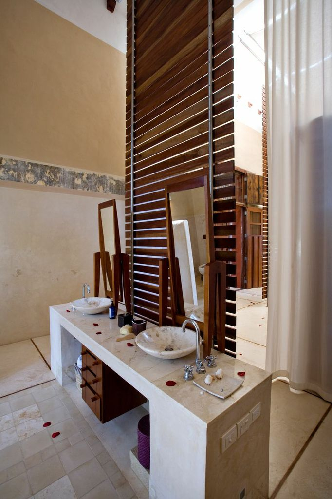Framing the entire hacienda are dry stacked stonewalls, tall hedges of fica and walls creatively designed with metal cages filled with local limestone. The grounds are filled with exotic rare palms, bamboos, gingers, tropical plants and fruit trees. The house restoration has been a project of the renowned Mexican architect Salvador Reyes Rios and his partner and wife Josefina Larrain. Most of the furniture throughout is designed by Salvador and fabricated locally.
