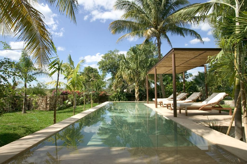 Continuing our exploration through a seashell mosaic tunnel (worth the visit just to say you walked through a seashell mosaic tunnel) one arrives at the 40-foot pool, a shimmering refuge from the glorious Yucatan heat. A steel and bamboo pergola and playita of shallow water lie beneath a sweetly suspended hammock begging for an afternoon siesta. Beyond the pool lies a bocce court for impromptu competitions and much-needed leg stretching in the cool of the evening sky.