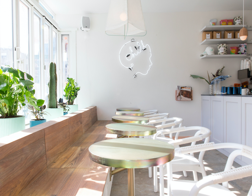 This week's #RealWomenReport is all about one of our favorite girl bosses that just opened New York City's newest wellness hot spot. Cyndi Ramirez-Fulton and her team of innovative wellness seekers saw a need in the bustling streets of NYC when it comes to on-the-go TLC for busy people. Cyndi sought to bring, "a downtown escape for city dwellers seeking a modern path to total relaxation with style, character, and ease." Well, this beautiful (and totally convenient) spot does just that. Chillhouse brings the trifecta of a day well spent to the Lower East Side with a cafe, nail and body focused menu with a light and airy, yet modern vibe designed by EAU.