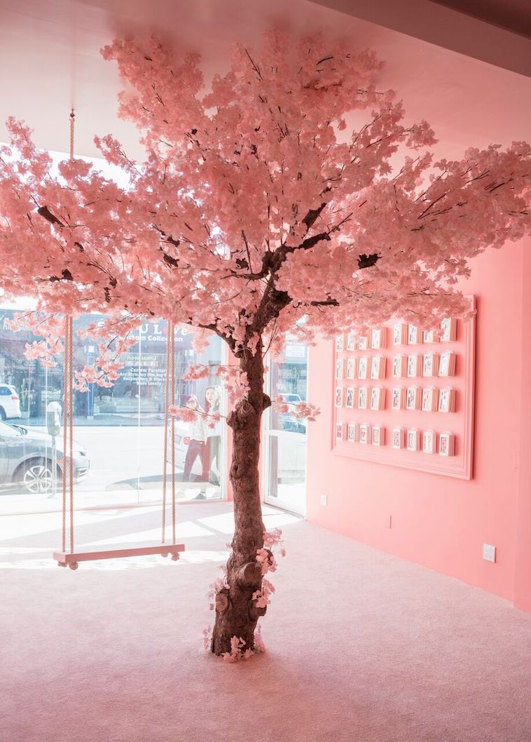 "The theme of the space is “The Future is Female.” I wanted the interior to celebrate femininity and make an impactful statement at the same time. I was inspired by the Japanese Sakura (cherry blossom) season, as it’s a celebration of beauty and the turn of a new season. The cherry blossom tree is able to set a whimsical tone for the space. I also wanted to add a swing to make the space inviting and interactive.” - Sonix Creative Director, Jillian Wheeler.