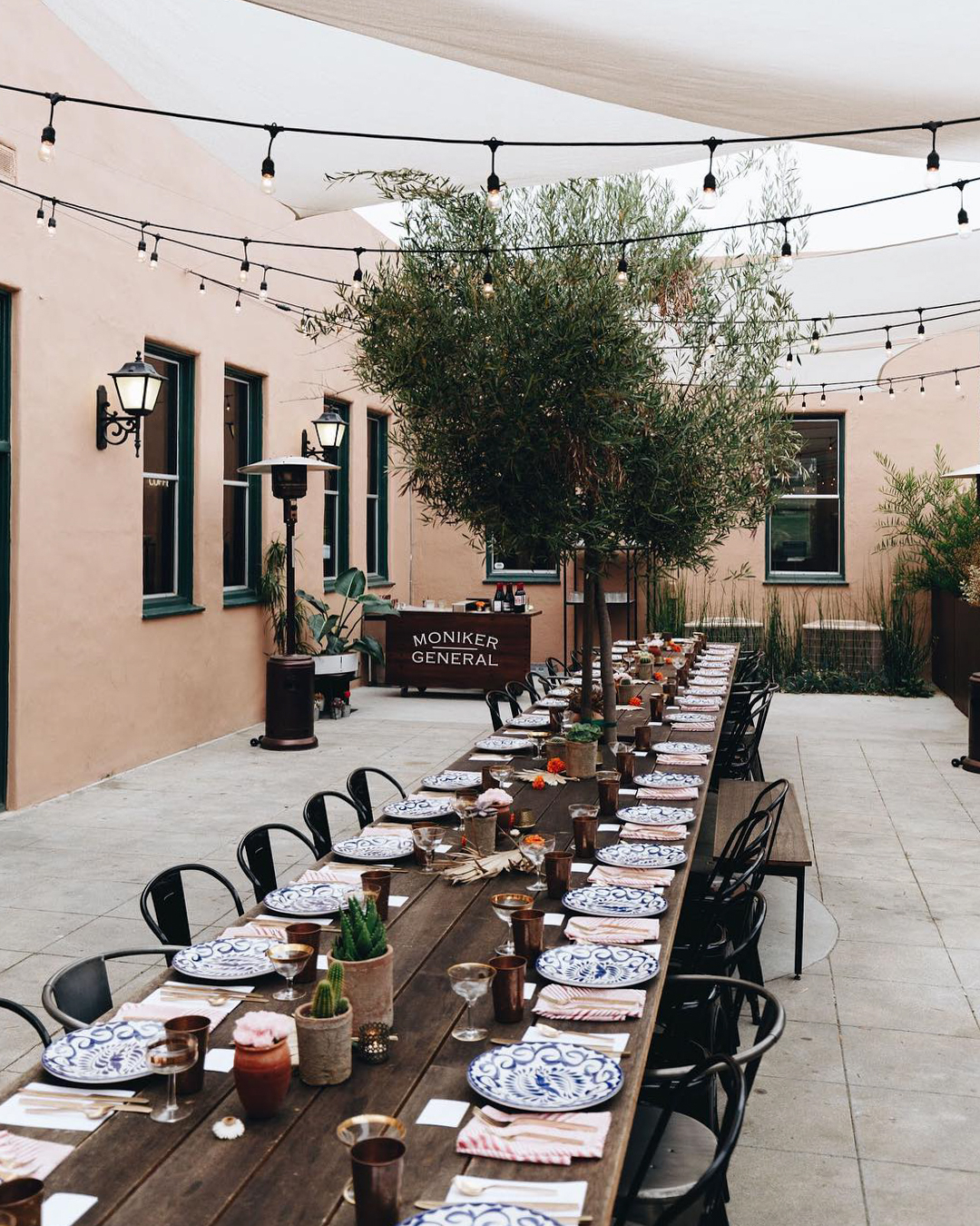 Take your seats at the most beautifully fabricated feasting table in San Diego (built around an olive tree) on the patio at Moniker General. Located behind the Moniker General Store within Liberty Station, the personally fabricated long wood and steel banquet table has seating for 40 of your closest pals. It glows at night under market lights for a sunset soiree and is shaded during the day for a beautiful engagement brunch, catered by your choice of a few fabulous local restaurants.