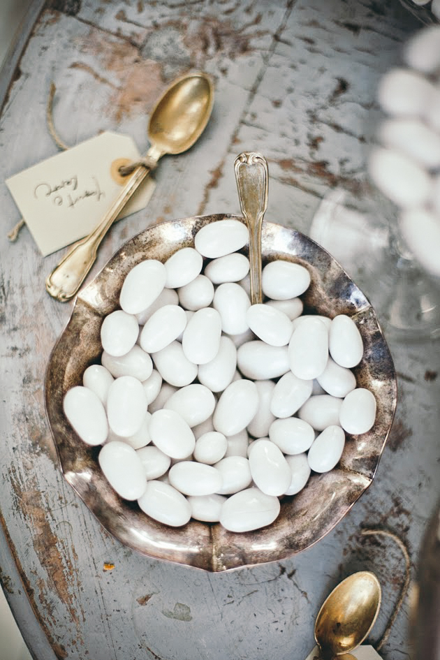 Traditionally, Italian wedding guests shower the exiting couple with colorful candied almonds (you know, those little confections in cinch bags). Five almonds bring health, wealth, happiness, fertility and longevity—yes, please.