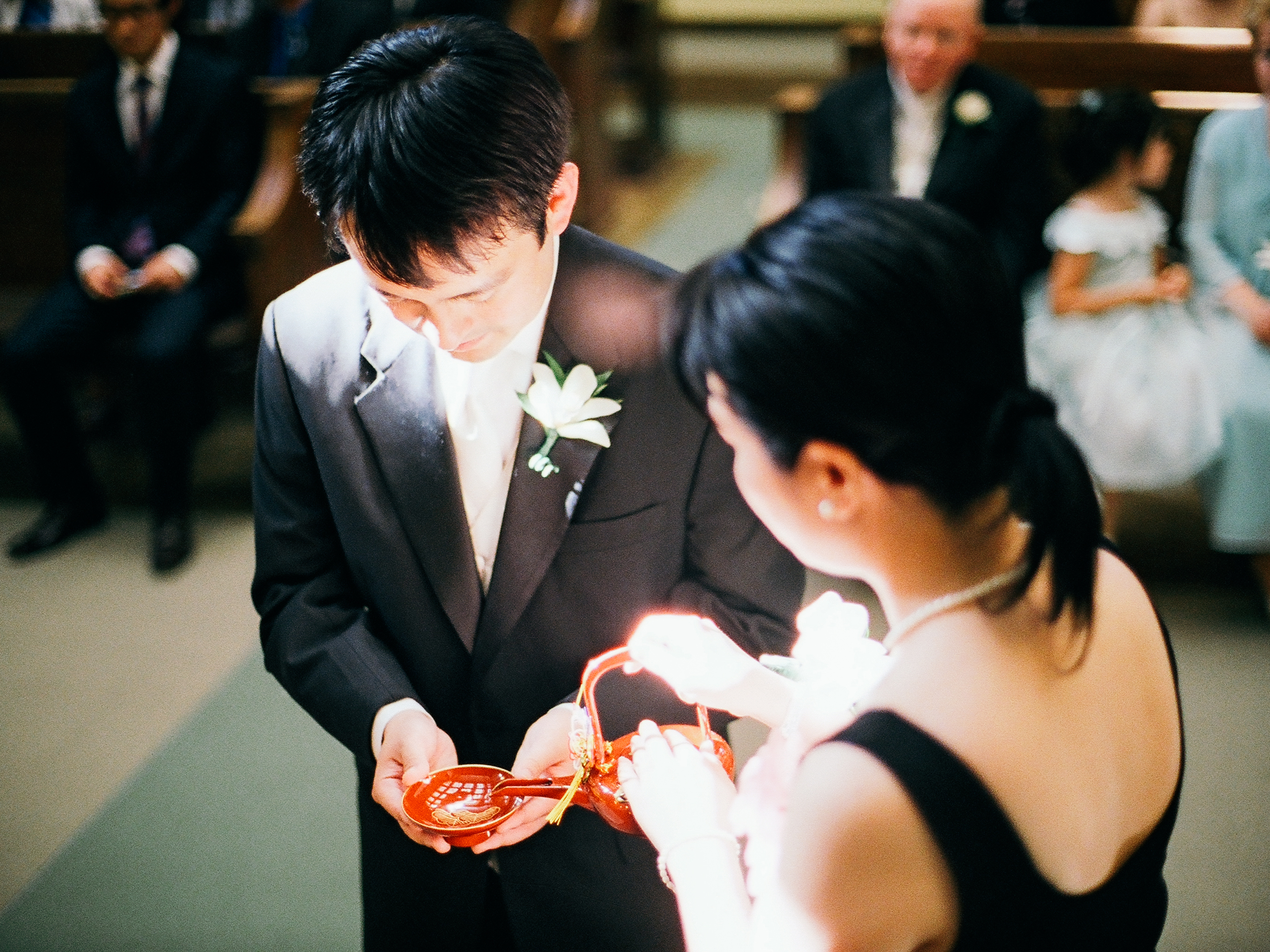 This age-old Japanese tradition of the bride, the groom and their parents sharing sips of sake out of the same three cups symbolizes the two families being united together. Not a bad way to bond with your in-laws.