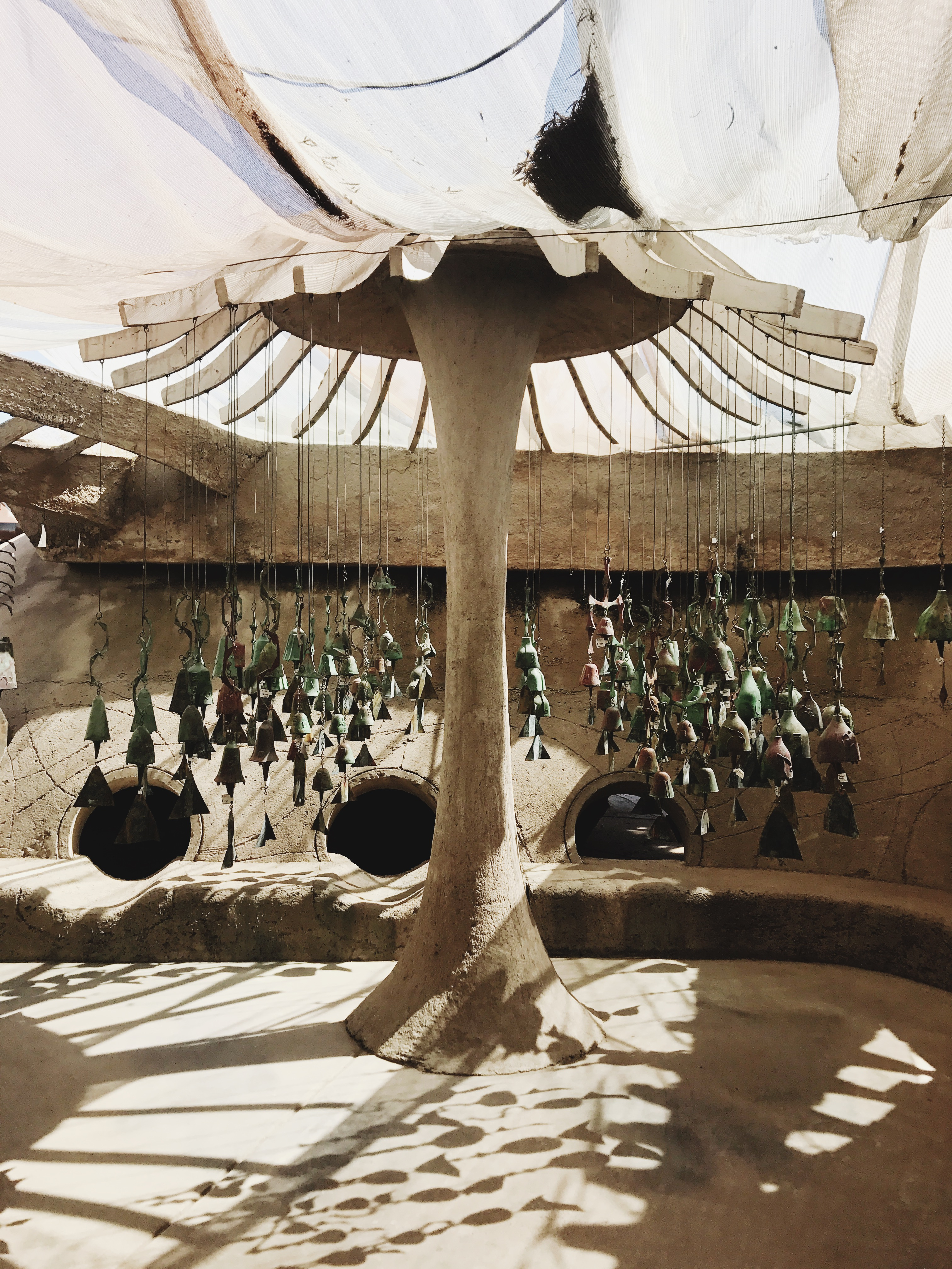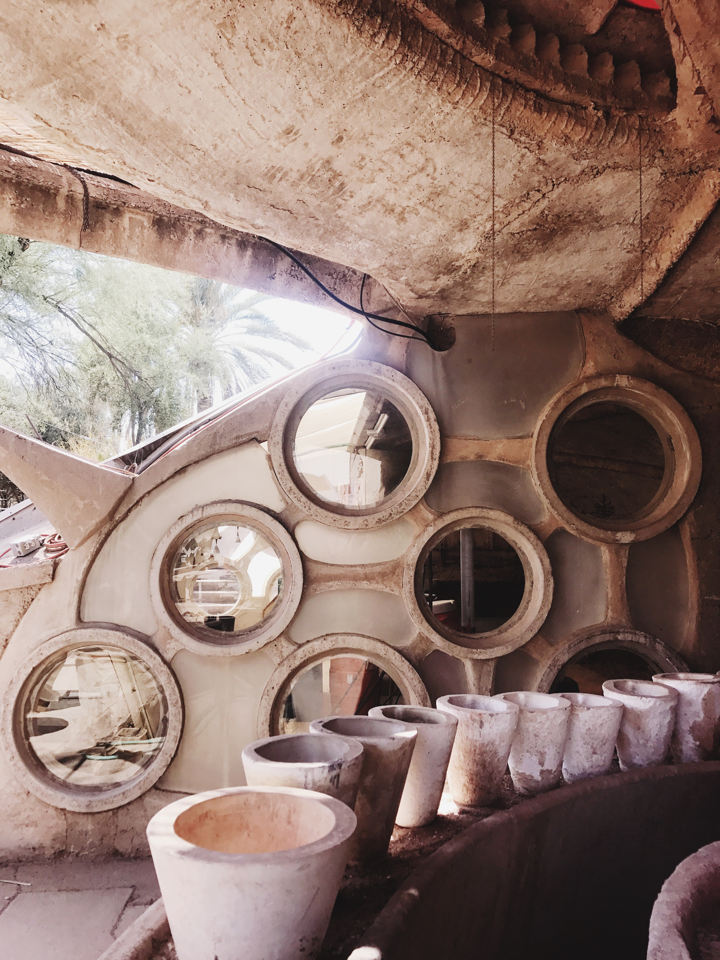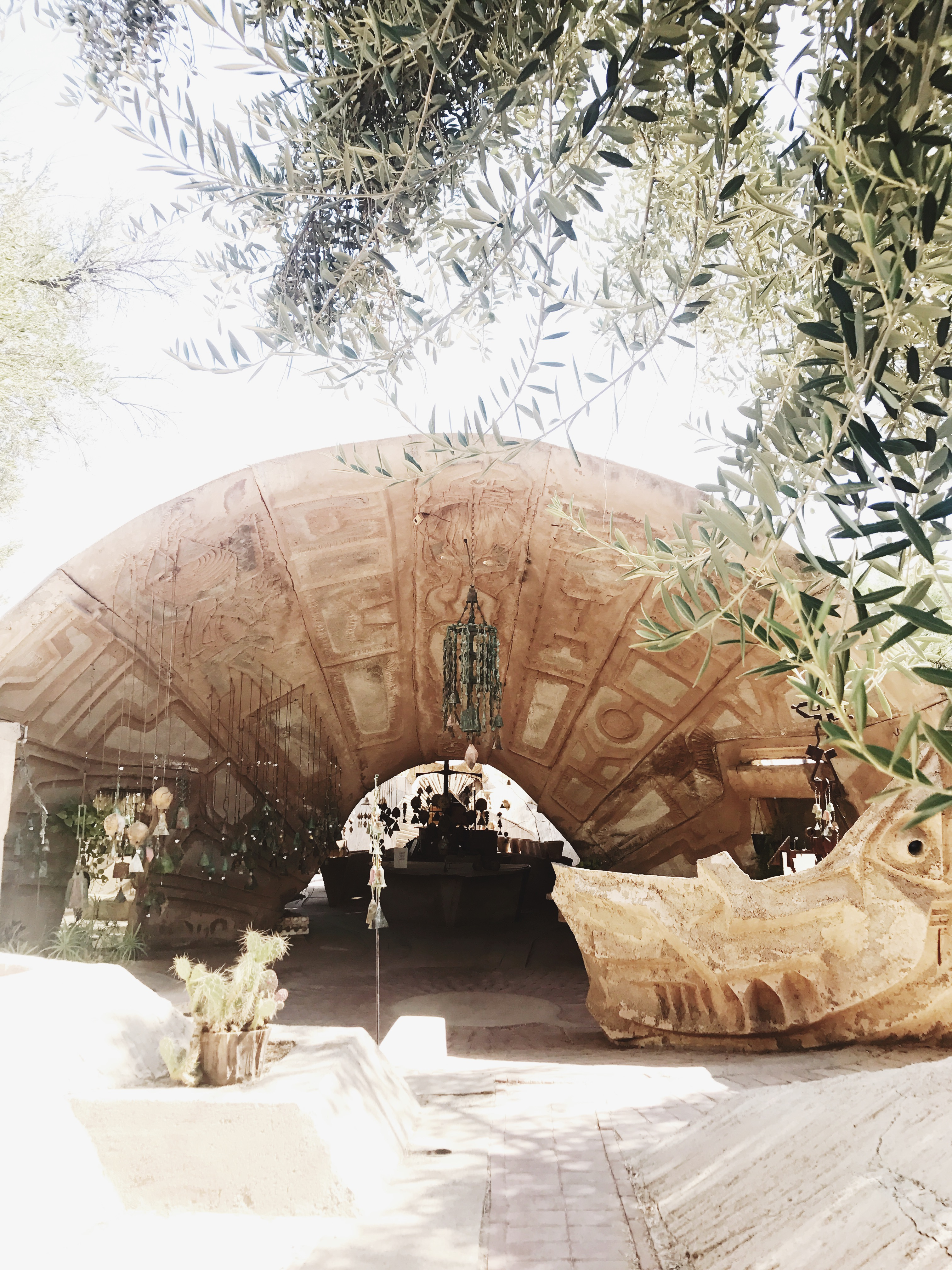 Cosanti truly knows how to beat the heat. No really, Paolo Soleri knew what he was getting himself into when he expanded his ranch home in true bricolage fashion. Many of the buildings on site are built below ground level and surrounded by mounds of earth to help moderate interior temperatures year round. You will also see apse (quarter spherical) structures. An apse is a passive solar energy collector running solely on how it displays itself to the ever-changing journey of the sun.