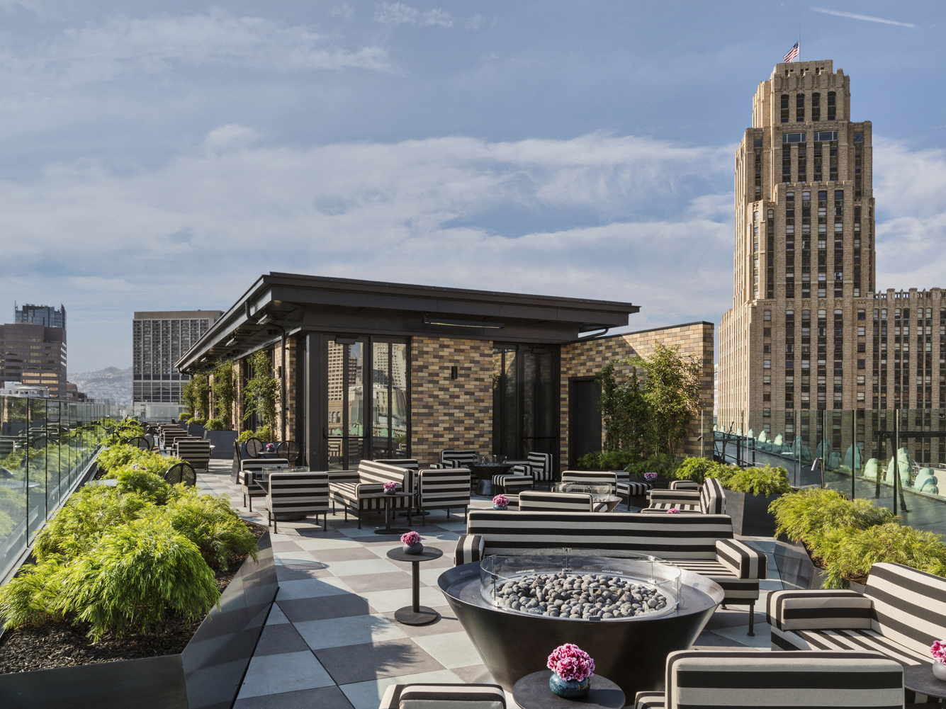 Every design detail at San Francisco’s Proper Hotel has been touched by the magic wand of designer Kelly Wearstler – this gorgeous rooftop included. With cozy couches and lounges, sweeping views of the cityscape and lots on deck for entertainment, this spot is lit come summertime.