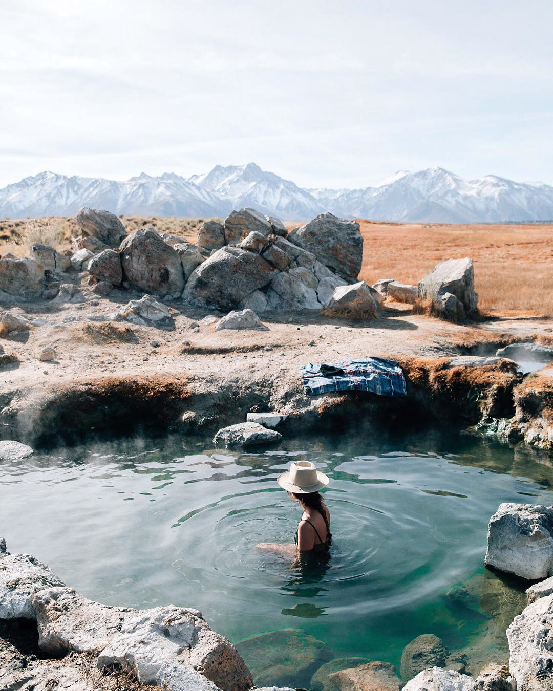 Surprise your bridechilla with a trek out to the Mammoth Hot Springs. These natural hot springs sit on a hill of cascading travertine in the Eastern Sierras in California.