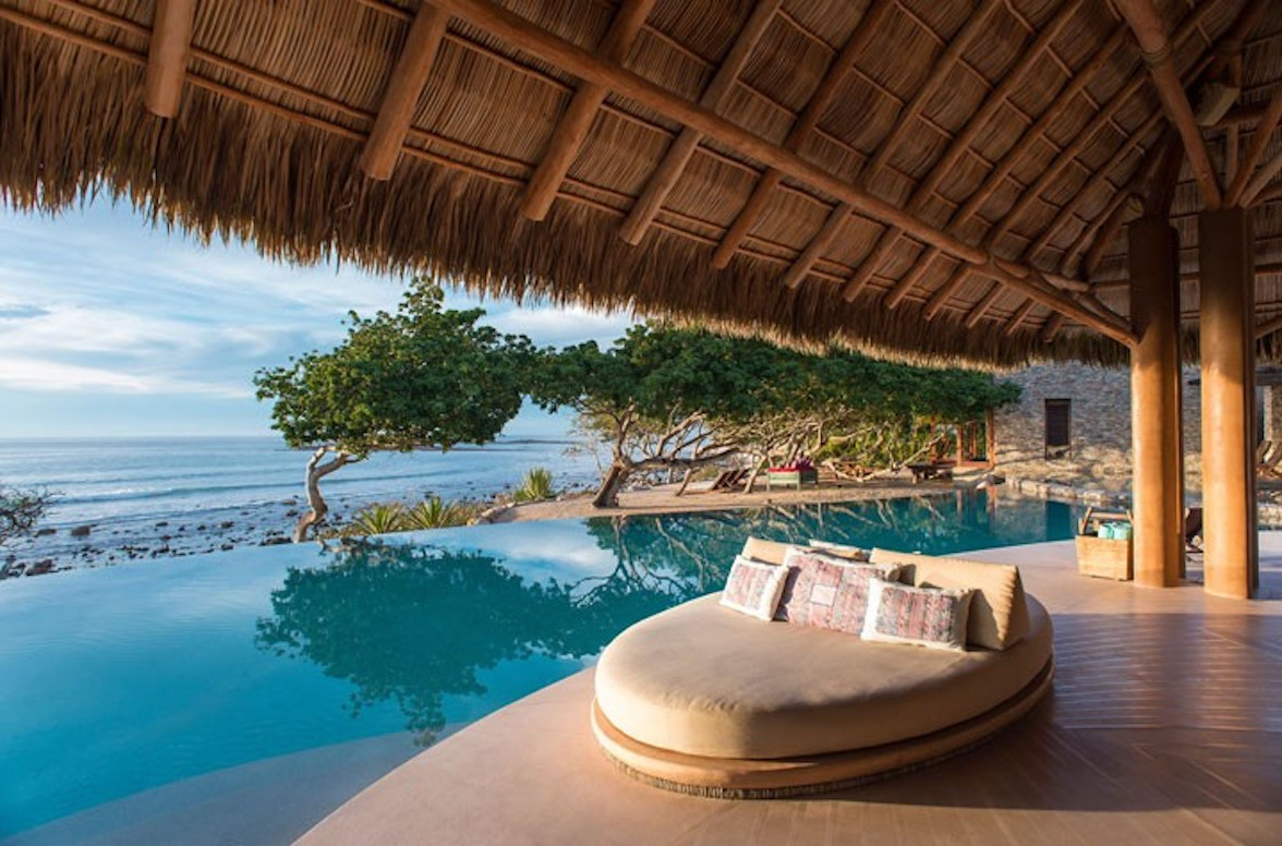 This modern six-bedroom abode in Mexico’s Punta Mita is set right on the beach, practically begging for a group of ladies to sit and sip on a salty ‘rita while watching the waves crash. And for those who aren’t interested in the waves, a dip in the network of reflection pools is always an option!