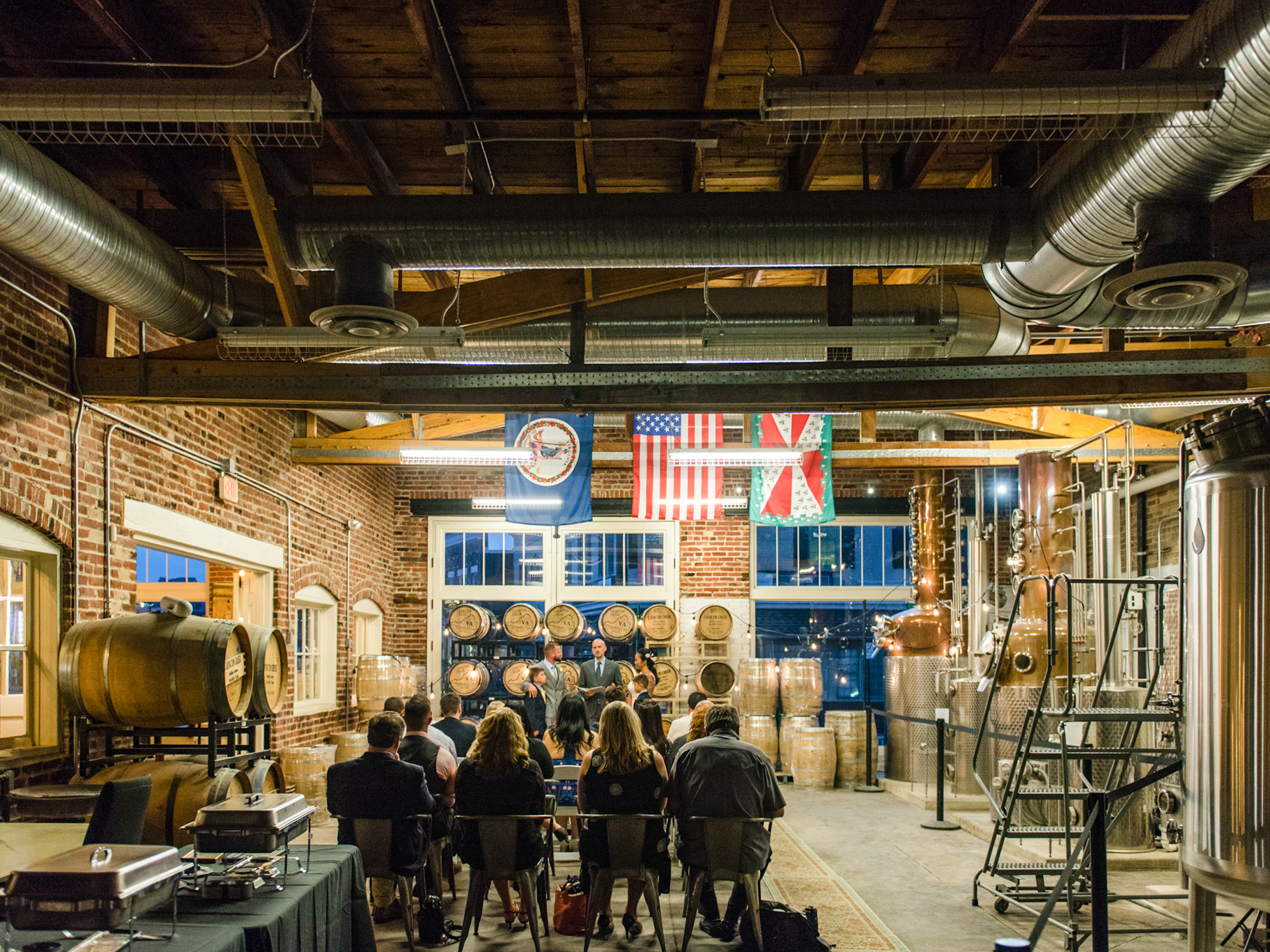 Kings County Distillery is New York City’s oldest operating whiskey distillery, the first since prohibition, gifting it a massively interesting pedigree. Located in the Paymaster Building in the historic Brooklyn Navy Yard, it was once a turn-of-the-century former bank and includes the Gatehouses, a pair of 1896 castle-like structures that were once the formal entrance to the Navy Yard. History, heart and craft distilled spirits, some of the finest in the nation, as well as an onsite whiskey specialist offering special tastings, makes the notion of a wedding at King’s County Distillery a lively and lovely proposition.