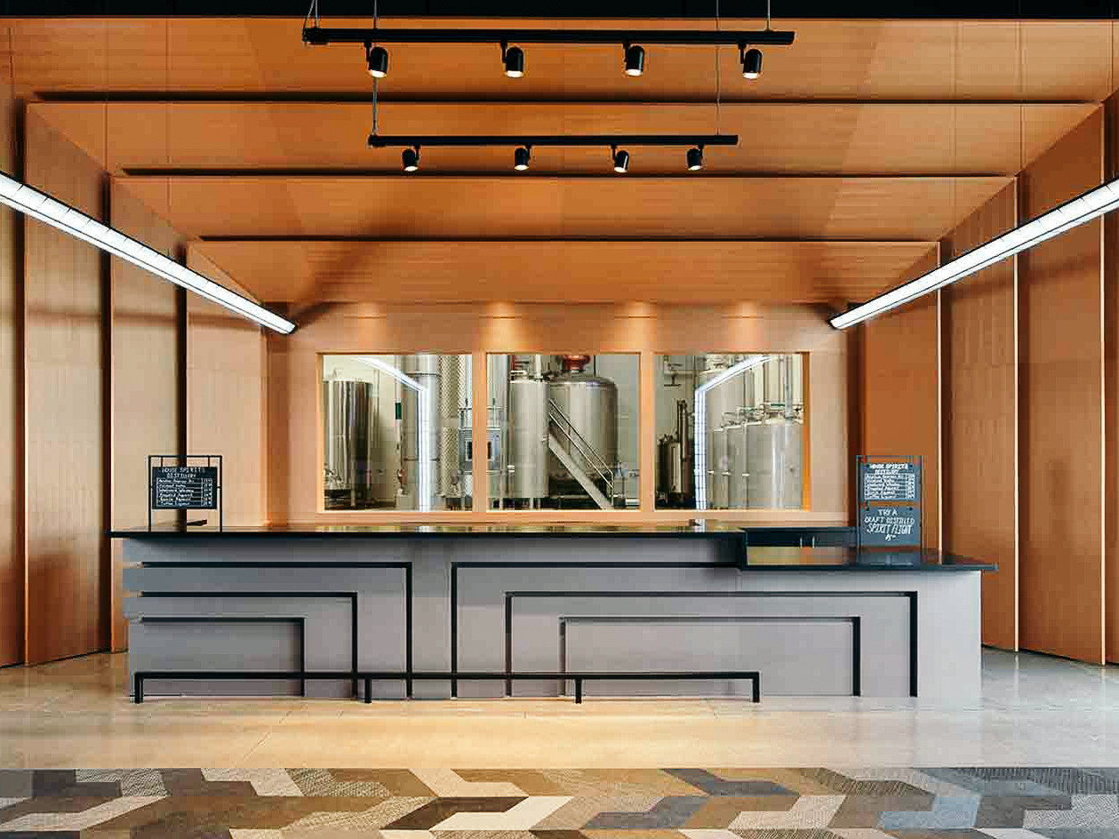 Catoctin Creek, located in Purcellville, Virginia is a progressive distillery using solar energy to distill their spirits. Besides it’s forward-thinking methodology, it’s also a 1920’s-era Case building, boasting an “industrial chic” setting in a meticulously restored space amid gleaming copper accents.