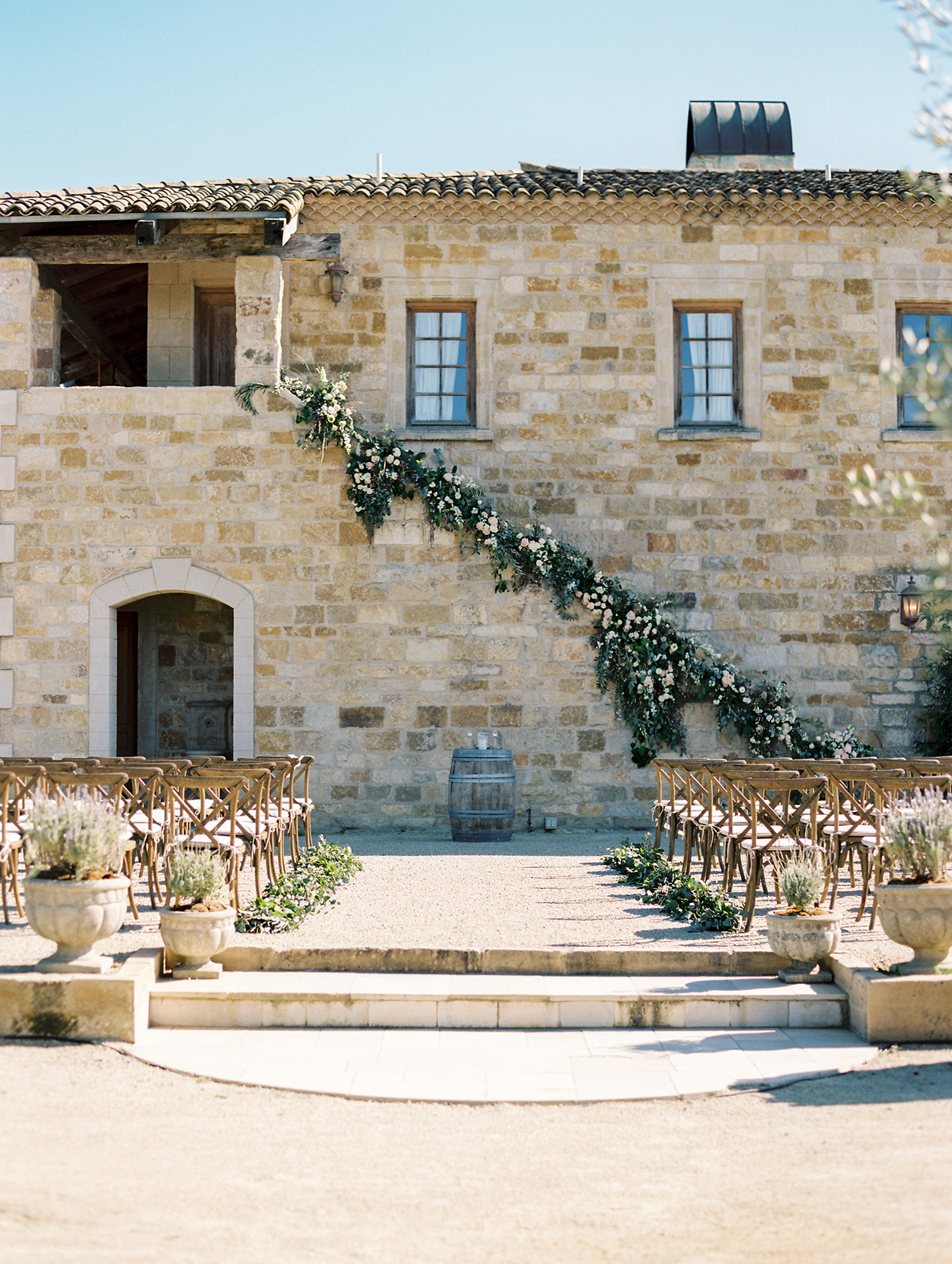 Sunstone Vineyards & Winery is reminiscent of a Provencal French countryside villa as it is built of imported limestone from a small village in France, with wood beams and roof tiles reclaimed from a 19th century lavender factory, once owned by Queen Victoria. It gives off a regal yet rural feeling, tucked into the edge of the Santa Ynez river in Santa Barbara’s award-winning wine country. Imagine a dance floor lit by fairy lights in the shadow of this old-world Tuscan masterpiece, while scents of French Lavender and rosemary swirl through the air.