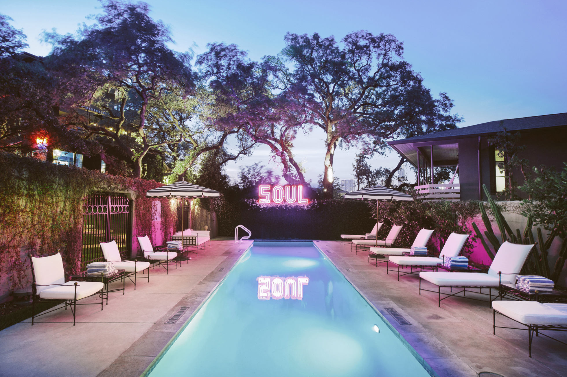 If you appreciate rock ‘n’ roll, your soul will be happy at this quirky Austin hotel that’s inspired by music from the ‘60s and ‘70s. The Hotel Saint Cecilia pays homage to the era in both its décor—a stylish hodgepodge of colorful patterns and funky vintage furniture—and amenities, such as the lending library of vintage LPs (to use in the provided record players in every room).