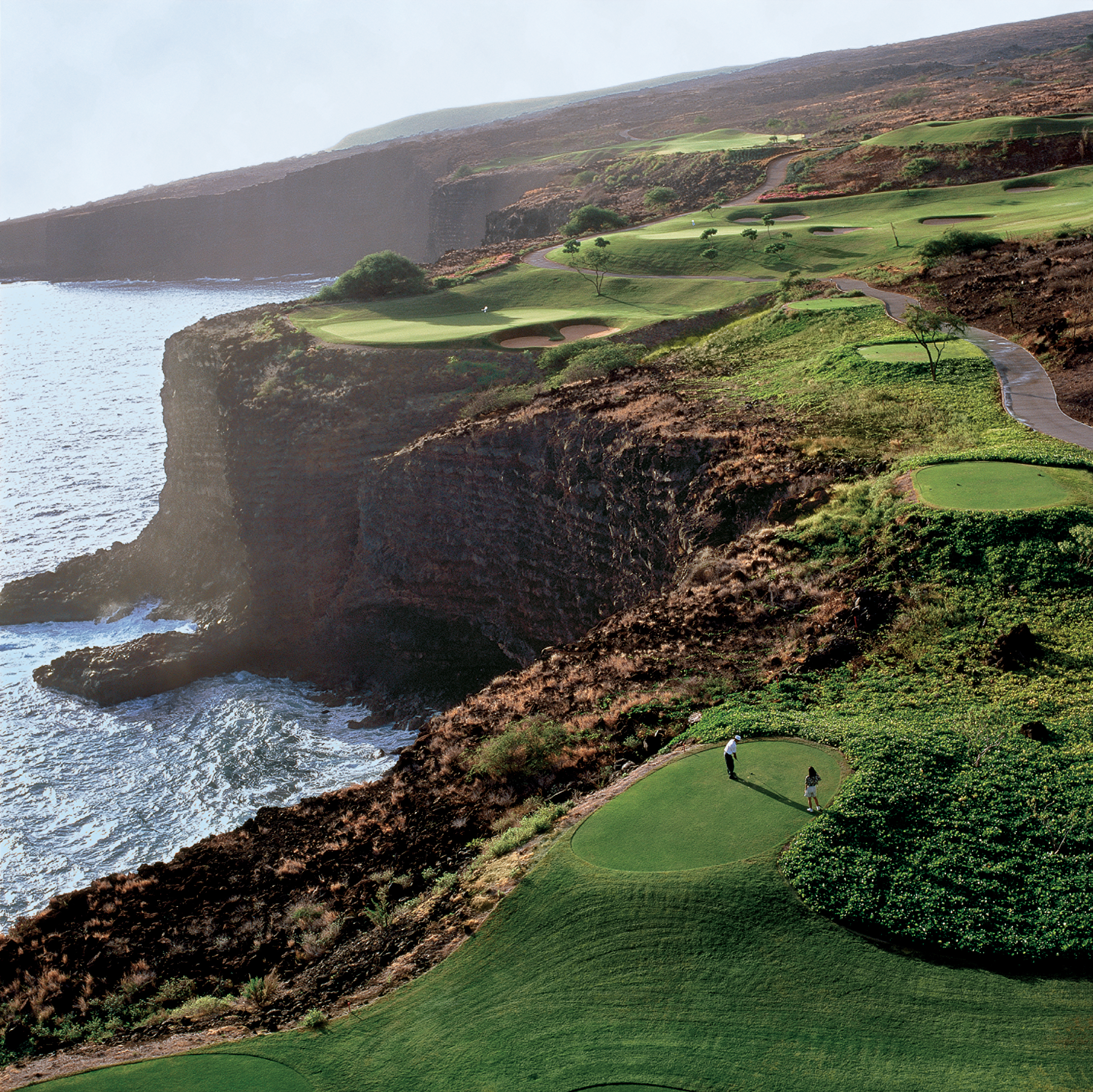 At the beach you’ll find Four Seasons Lana’i, a peaceful resort chiseled right along sacred rocks protecting the cliffside. Sunset cruises often come with whale watching as an added bonus or you can easily spot the spinner dolphins in the bay without ever leaving land. For those couples that like a little speed in their downtime, UTV-ing through the red sand on the island is a bucket list checkmark as is horseback riding through the unique topography of Lana’i’s deer-filled forests.