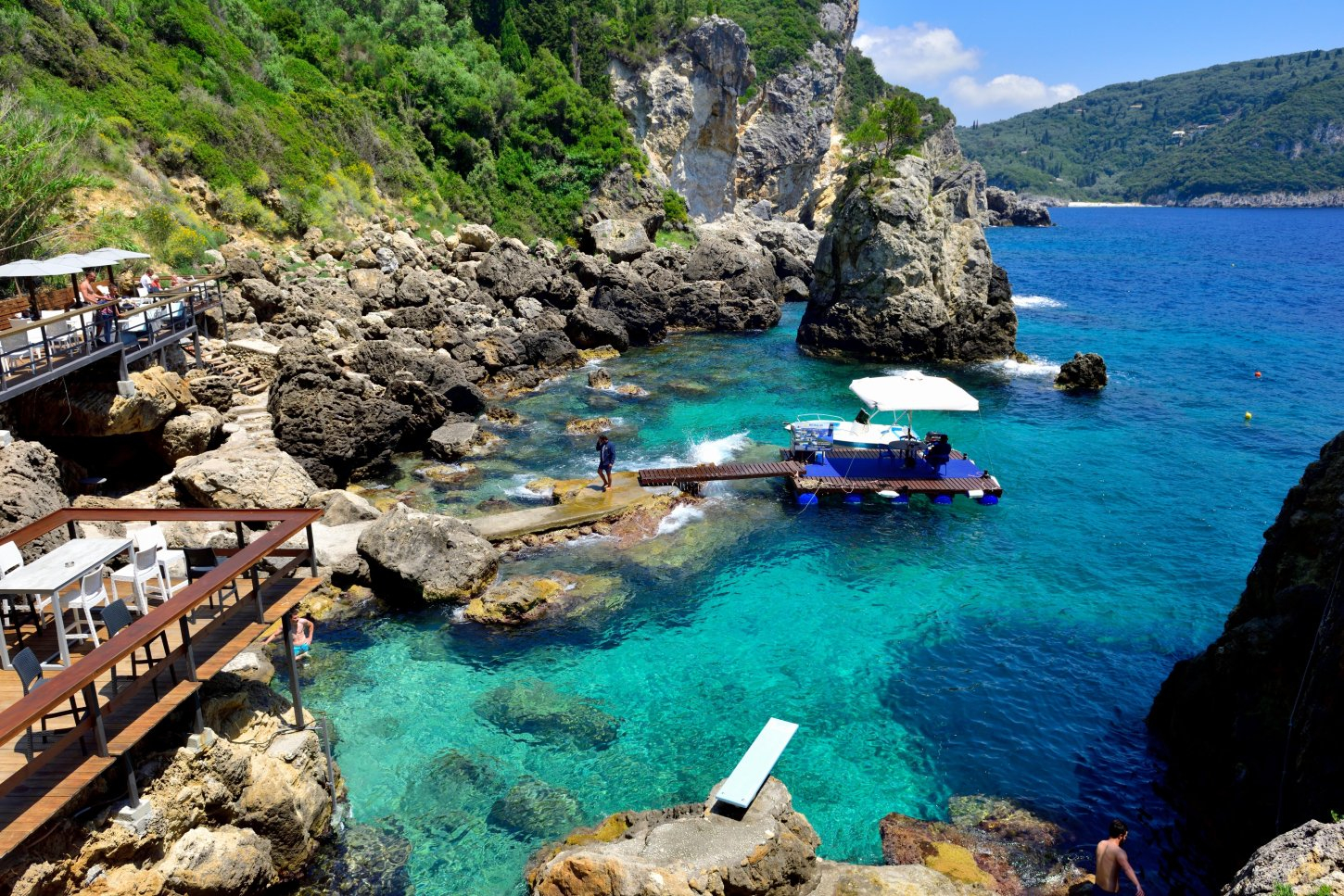 Adventure to La Grotta Corfu for cliff diving in the bluest water. This hidden spot is seasonal and the snorkeling is top-notch.