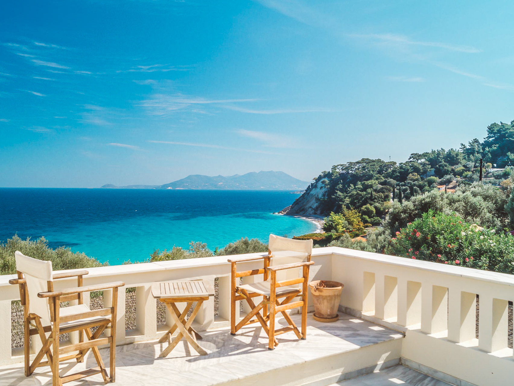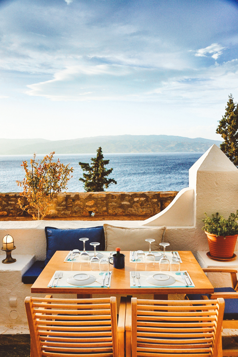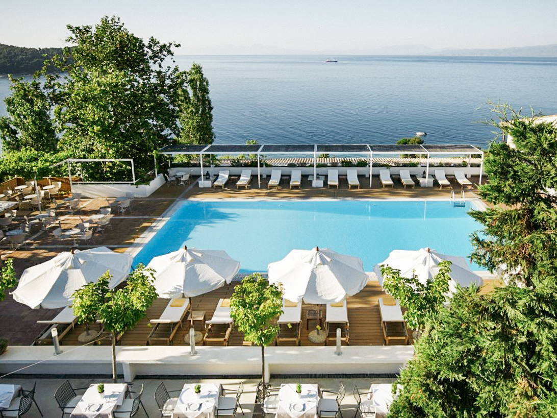 A contemporary 38-room hotel located in central Skiathos, Bourtzi tows the line between being totally flash in the shared spaces and all about serenity inside the suites. Book a stay here if you’re looking for something a little outside the norm.