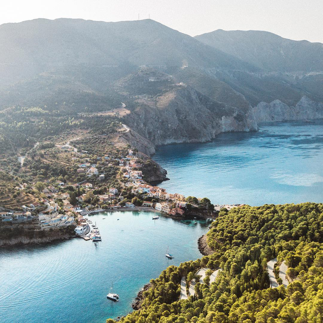 Perhaps the best way to see the tiny peninsula of Assos on Kefalonia is by hiking the hills above to get a view of the Venetian architecture and intricate layout of the 100-person town.