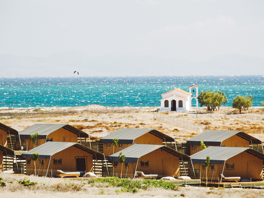 Keros Beach in Limnos is known most for its dependable kite surfing, wind surfing and surf camp. Surf Club Keros offers apartment-style stays that are great if you’re looking for something a little more polished than their beachside glamping setup.