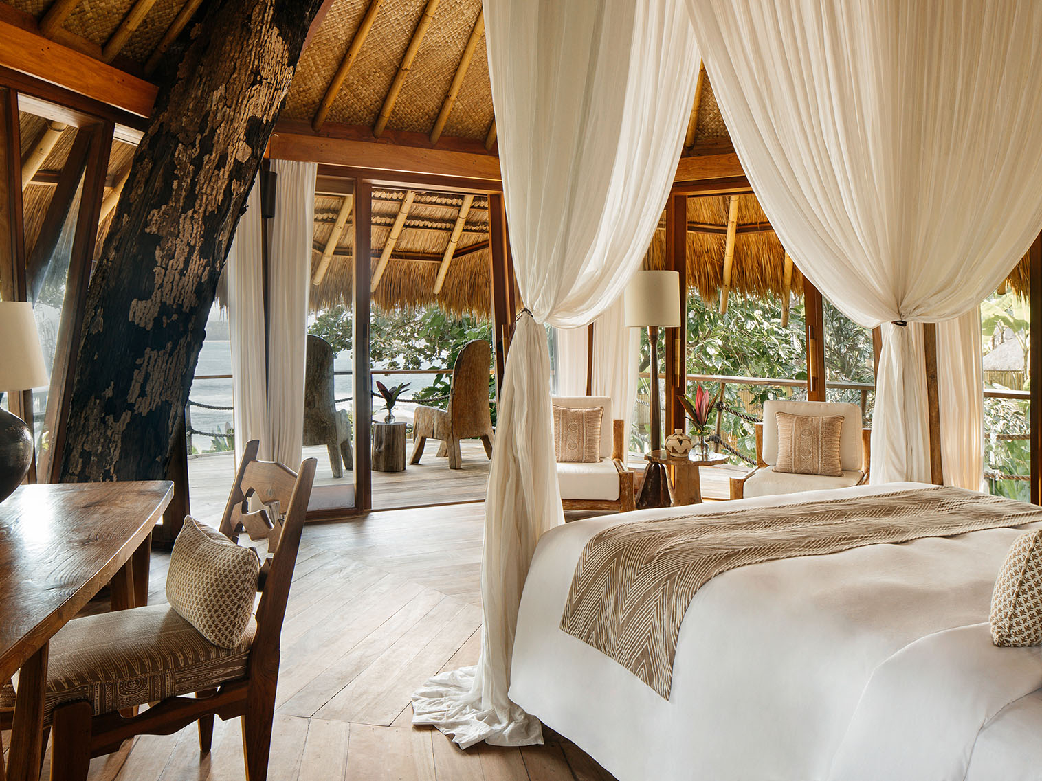 Houses-on-stilts overlook the Caribbean Sea from Tulum’s beautiful beaches, double-decker treehouses tower in the jungle of a Thai eco-resort, and four new treehouses are soon to be unveiled in Charleston. Suffice it to say, these treehouses are well beyond the scope of what your childhood imagination may have pictured for your own backyard, but we’re sure you’ll still be overwhelmingly pleased by these cozy stays. There’s an olive grove in Tuscany with treehouses, a Lithuanian forest getaway and so much more in this year’s edition of treehouses we can’t get enough of.