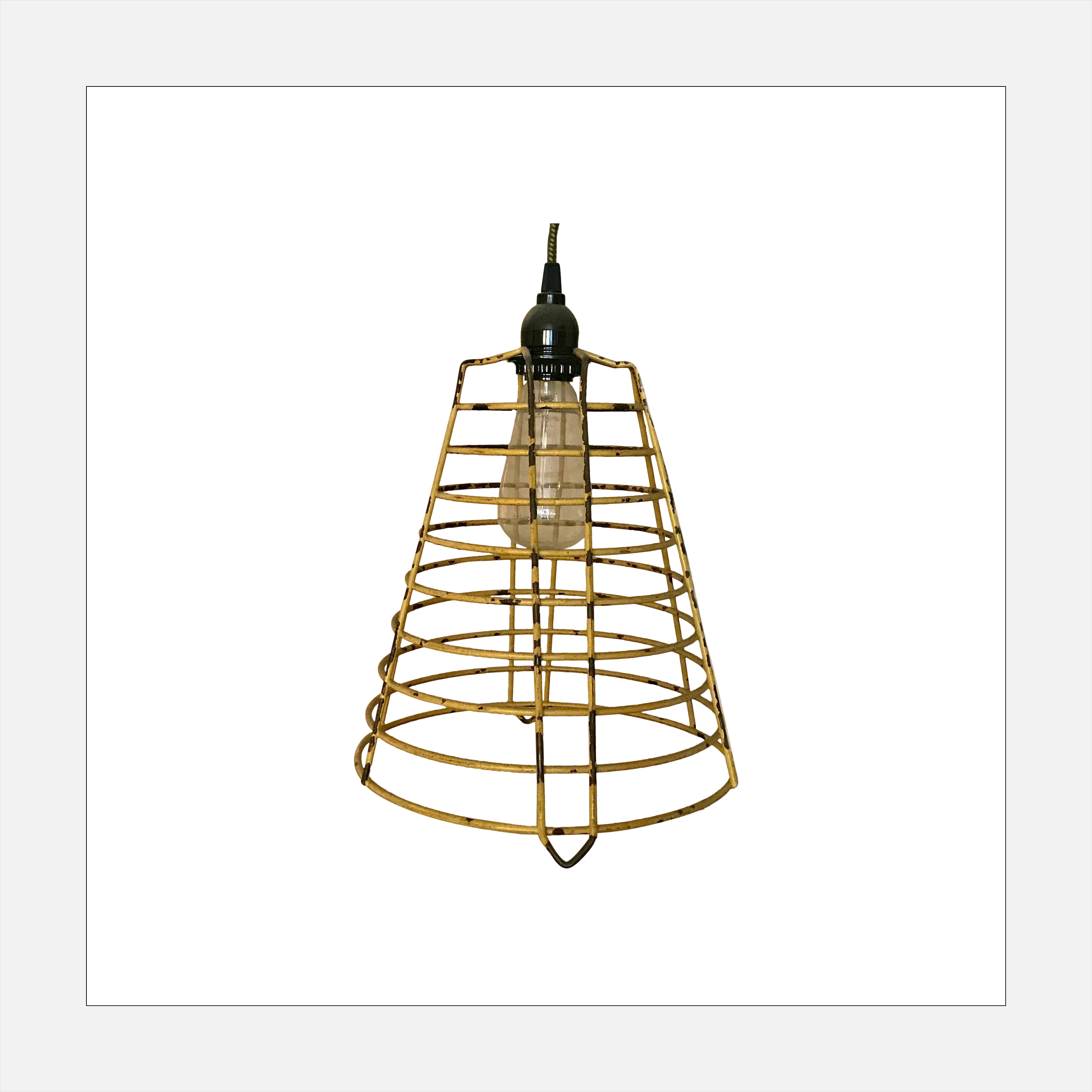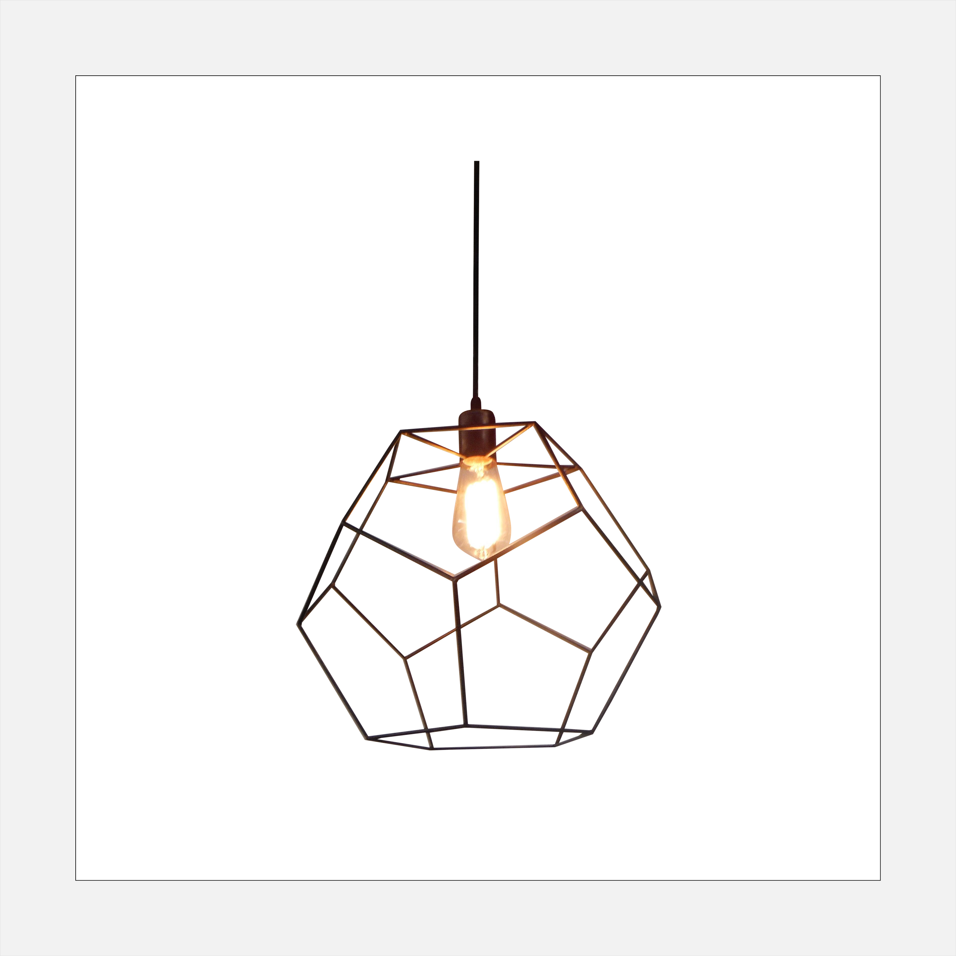 Similar in concept to the cage lamp, this Isocahedron pendant plays with Eucledian geometry and has a slightly larger scale to it. It’s got that industrial vibe, complete with an Edison lightbulb.
