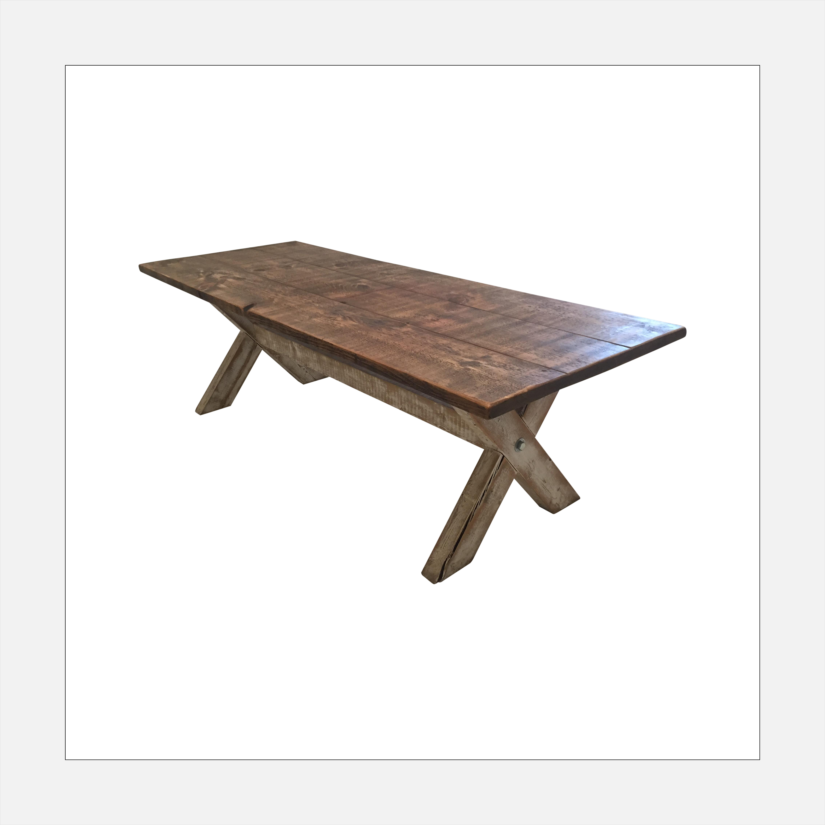 This reclaimed pine dining table was handmade in England and has a cool, whitewash x-frame base that gives it that old-world feel. Just add a vintage enamelware pitcher on top with freshly picked grasses and flowers from the garden.