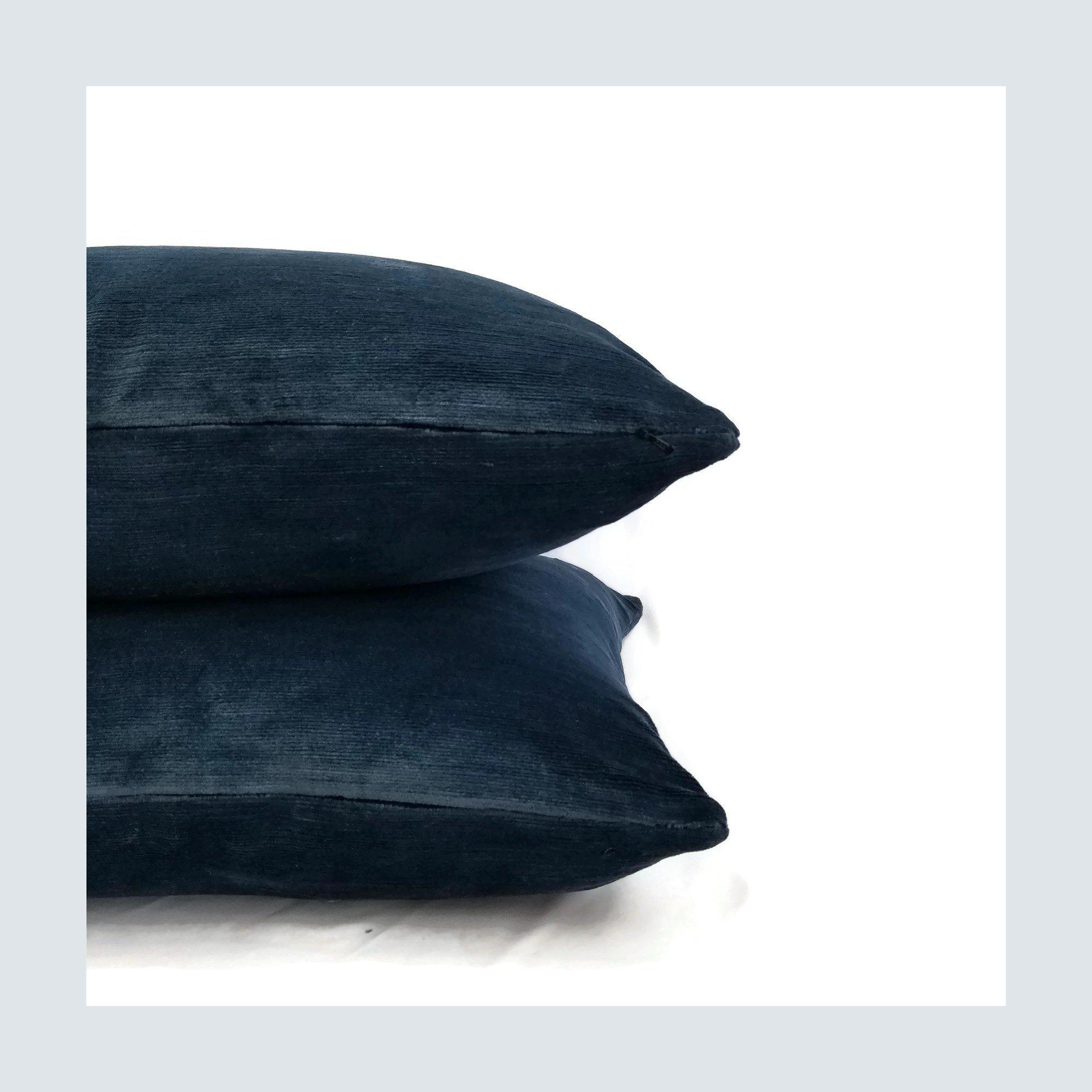 Luxurious velvet pillows would be a fab addition to the pattern play, so go ahead and snag a couple of these to pile on. The deep navy hue is Schumacher through and through, with a subtle strie that creates a linear, textural effect that adds to the luxe factor.