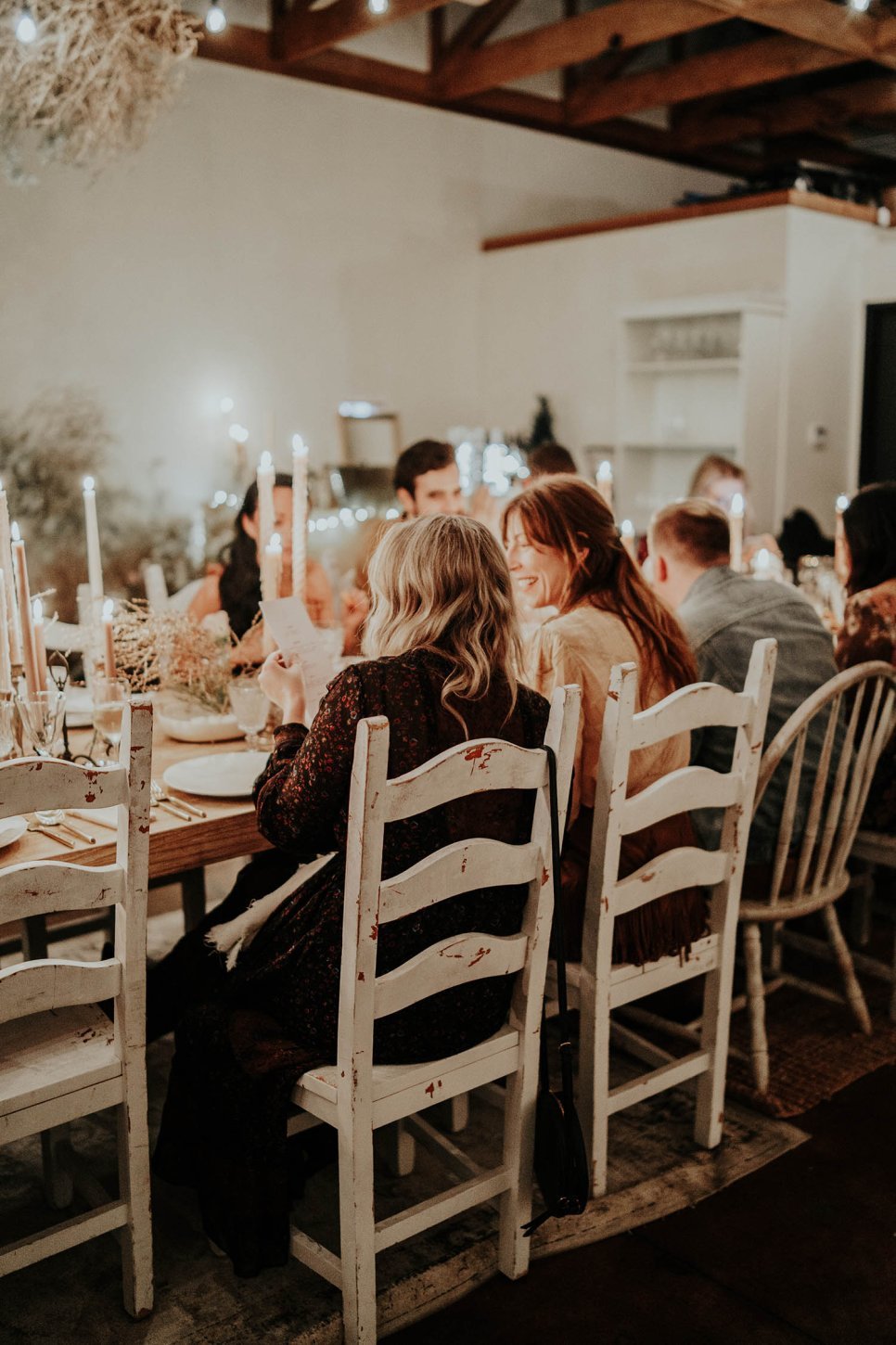 As part of our Camp VR: Winter Edition, we’re leaning into that same nostalgic pull of everything cozy, fireside, and camp-coded during the colder months. Years ago, we at Venue Report hosted a holiday soirée inspired by a similar Wild West frontier, campsite mood. Guests arrived in western-meets-dinner party chic holiday party attire and entered a space designed to feel as if the outdoors had been brought in: wild brambles, roses, and tumbleweeds encircled three long whitewashed feasting tables, vintage mismatched chairs framed the room, and 80 taper candles blazed down the center casting a warm, flickering glow like a campfire and illuminating the space like lanterns guiding travelers along a frontier trail.