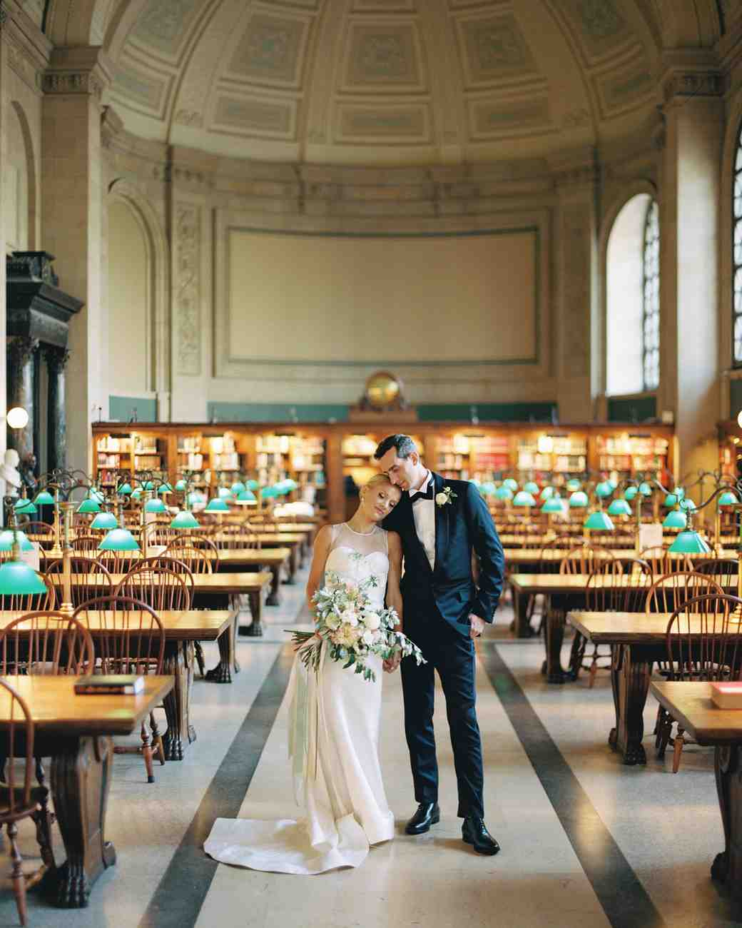 "Want the elegance of a ballroom with a bit of whimsy? This couple wed in the classic Boston Public Library and took portraits framed by rows of old wooden desks, making for one incredible photo." - Martha Stewart Weddings | See similar library venues here →