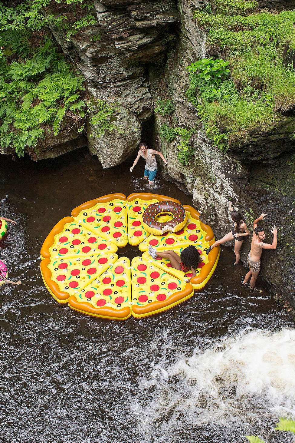Find your local watering hole, lake or pool. When a moon hits your eye with a Giant Pizza Pie! that's amore!! $55 a slice isn't a bad price (heck it's about the price of a real pizza) If you and your buddies each buy one you can make your own giant pie. The best part? You are the toppings!