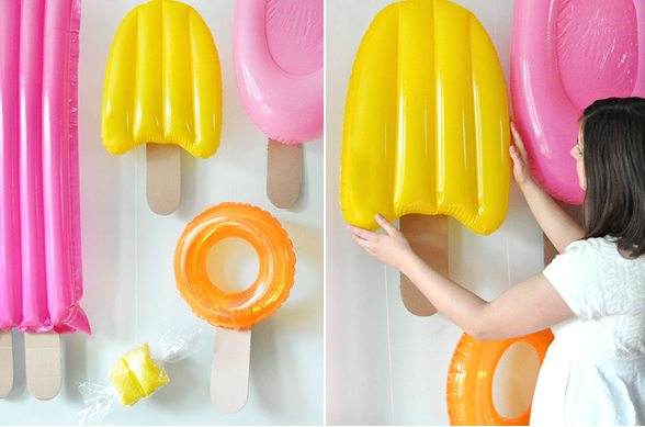 Check out these DIY pool popsicle floats from Oh Happy Day! These ones can be grouped together to make a fun photo backdrop wall or used as decor for your next pool party. Check out these easy peasy DIY instructions on Oh Happy Day