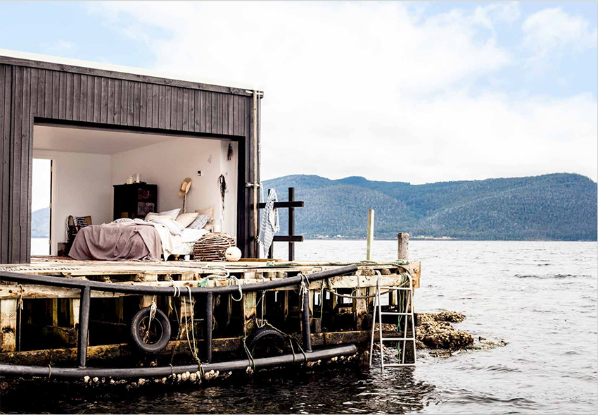 We'd gladly shipwreck ourselves with our friends for a weekend getaway at the wildly fabulous Pumphouse Point, a boutique wilderness retreat situated inside the Cradle Mountain Lake St Clair National Park, one of the most celebrated Wilderness World Heritage Areas on the planet. The property features the adaptive re-use of industrial art deco buildings, originally built during the 1930s as a state-of-the-art facility to pump water from Lake St Clair to the nearby Tarraleah Power Station. The industrial site was decomissioned in the early 90s and has now been converted to offer 18 rooms of exquisite accommodation, comfy lounges, atmospheric dining, roaring fires and a range of exciting wilderness experiences. One of these buildings, the Pumphouse, is spectacularly positioned 240m out over Lake St Clair - Australia's deepest lake! The other building, the Shorehouse, is a stunning example of art deco design located on the lake's edge and contains the lounge/dining/entertainment venue with giant windows, deck area and exceptional views of the Pumphouse, lake, forest and mountains beyond.