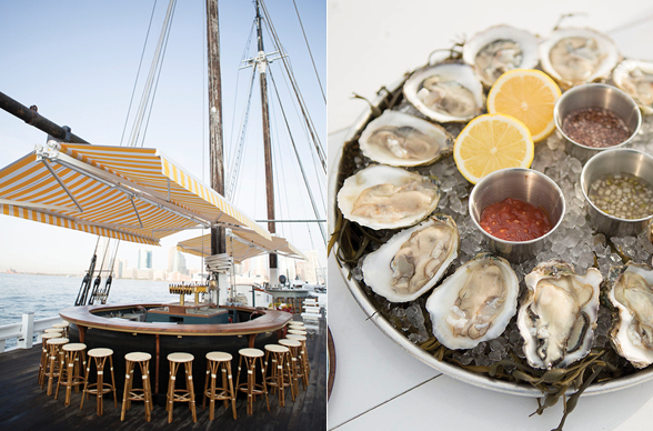 Allll aboard!!!! Collect your crew and climb aboard Grand Banks, a floating oyster bar run by Alex and Miles Pincus, two brothers from New Orleans, and Adrien Gall in New York. Imagine clinking glasses and slurping briny oysters while the sun sets on a perfect summer day, the boat sways softly with the tide, breeze blowing in your hair and your favorite faces right where you like them, near you.