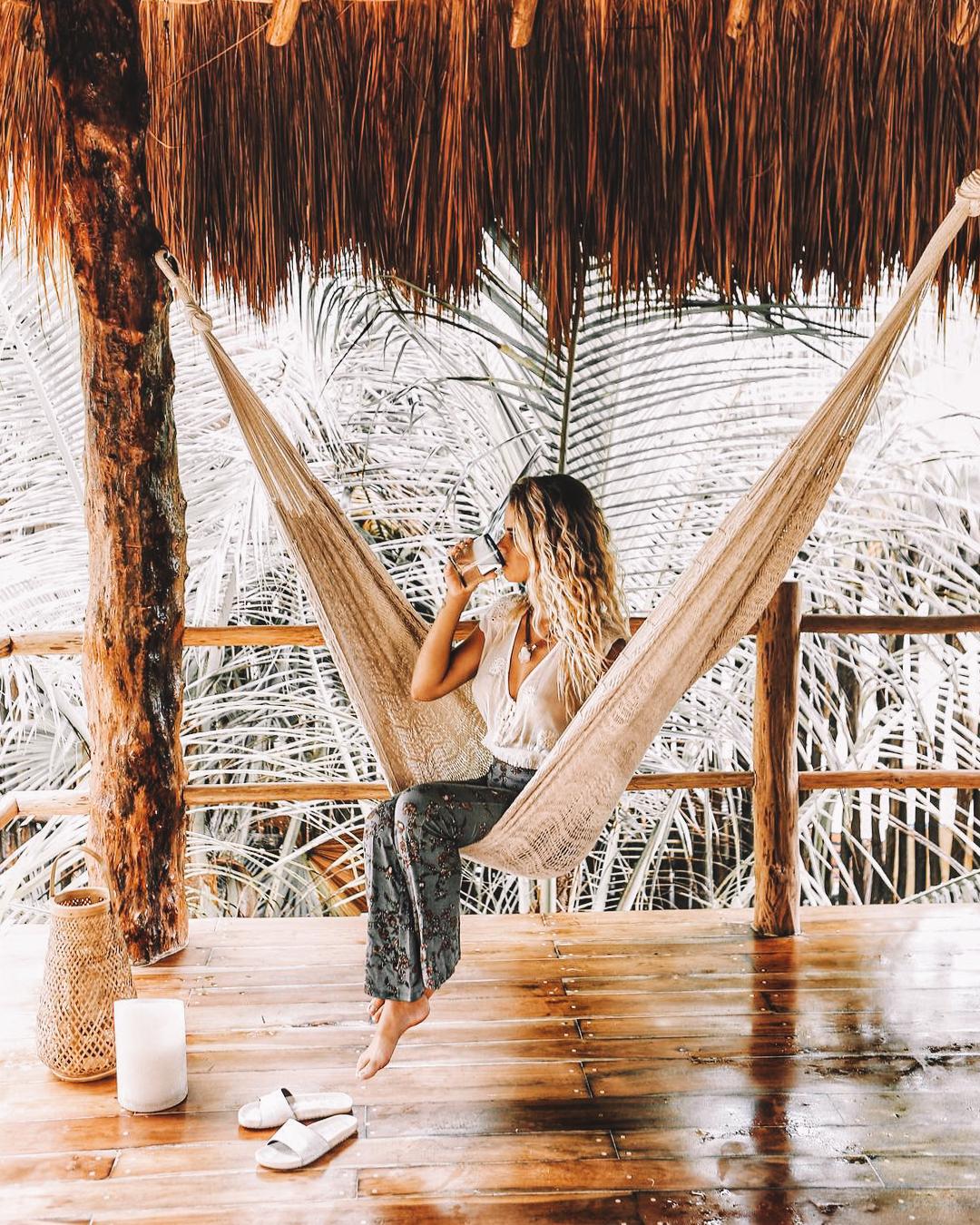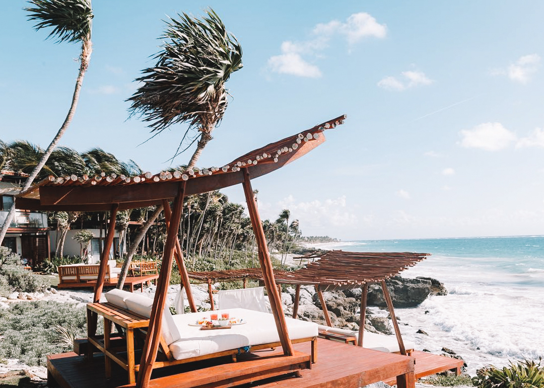 Eight rooms on the edge of the Caribbean, this small hotel in Tulum is a total delight. Sip margs on your balcony while swinging in a hammock and looking out onto the sea.