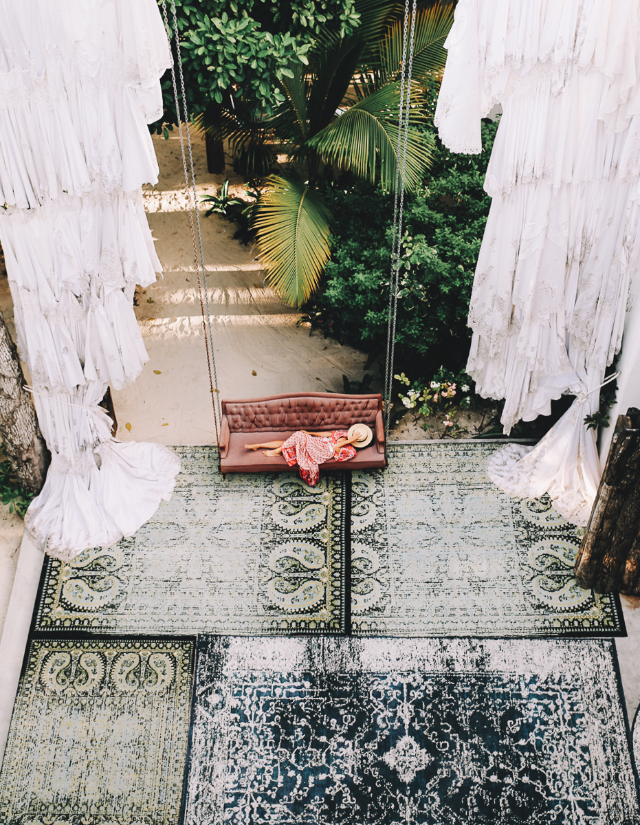 A collection of nest-like treehouse huts with luxurious accommodations inside, Azulik offers guests one of the most unique stays in Tulum. With big beach swings, lots of loungers, hammocks, plunge pools, and a zen den, this hotel has relax and recharge written all over it.