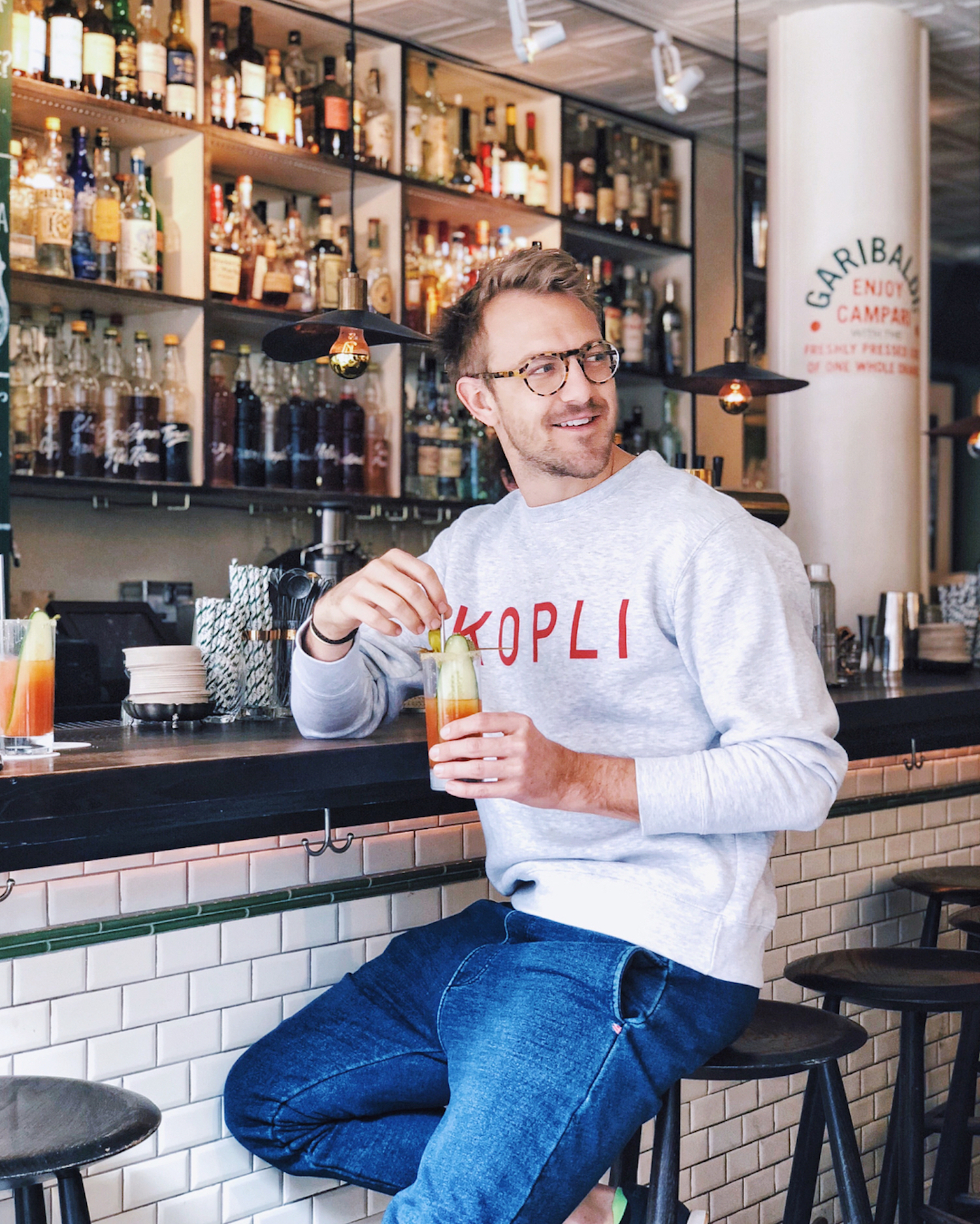 We love brunch time at the cafe, and along with it, a decadent Bloody Mary (we take ours with Grey Goose). The mix is perfectly balanced, with just the right amount of kick. But the real reason we love it its the perfectly decadent garnishes. They eschew anything too crazy for just the right mix: pickled peppers, a cornichon and a long, perfectly thin, pickle slice. – The Liquor Cabinet