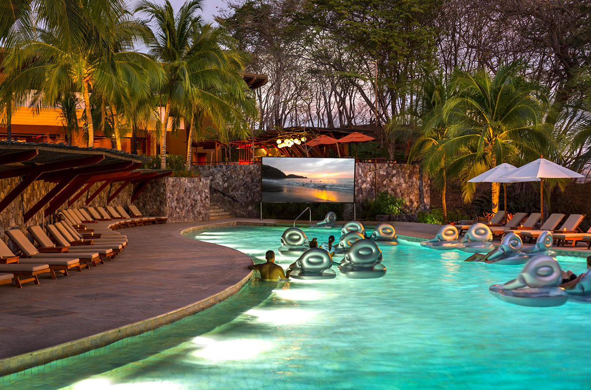 How does a Friday night movie sound... in the pool the Four Seasons Resort in Costa Rica? If it sounds as good as you think it does (and it is), you'll want to pack up your posse, pull up your favorite floaty and kick back for a little pura vida in paradise. The resort itself is a Pacific coast hillside oasis, overlooking two golden sand beaches - the only five star resort in Central and South America. Think poolside movie night with a side of eco-adventure, luxury spa and world-class accommodations.