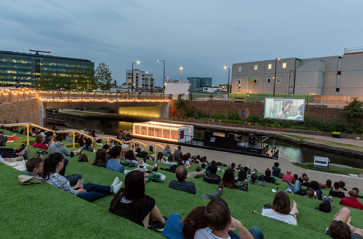 The Floating Cinema is an award winning architectural structure that brings programmes of film and expanded cinema events tailored to the canals and rivers it visits in London & the UK. UP Projects created The Floating Cinema in 2013 designed by award winning Duggan Morris Architects. The Floating Cinema is an extraordinary floating structure, a mobile arts venue and cinema that navigates the waterways of London and the UK. Floating Cinema events vary in size from intimate floating tours for 12, on-board screenings, workshops and talks for up to 20 people, to large-scale outdoor screenings for audiences of 500+. Can you imagine a night on this floating cinematic boat with 12 of your bests? Hello best night ever.