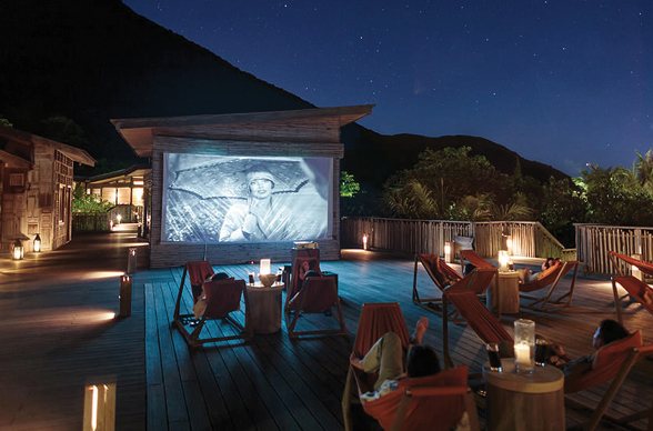 Ever wish you were watching a Hollywood classic on an inflatable screen in the middle of an untamed jungle? Cinema Paradiso at Soneva Kiri in Koh Kood, Thailand can make that wish come true on a nightly basis. Enjoy gourmet munchies and an array of craft cocktails as you relax with one of your fave classic flicks at nightly screenings in their jungle-cloaked, open-air theater.