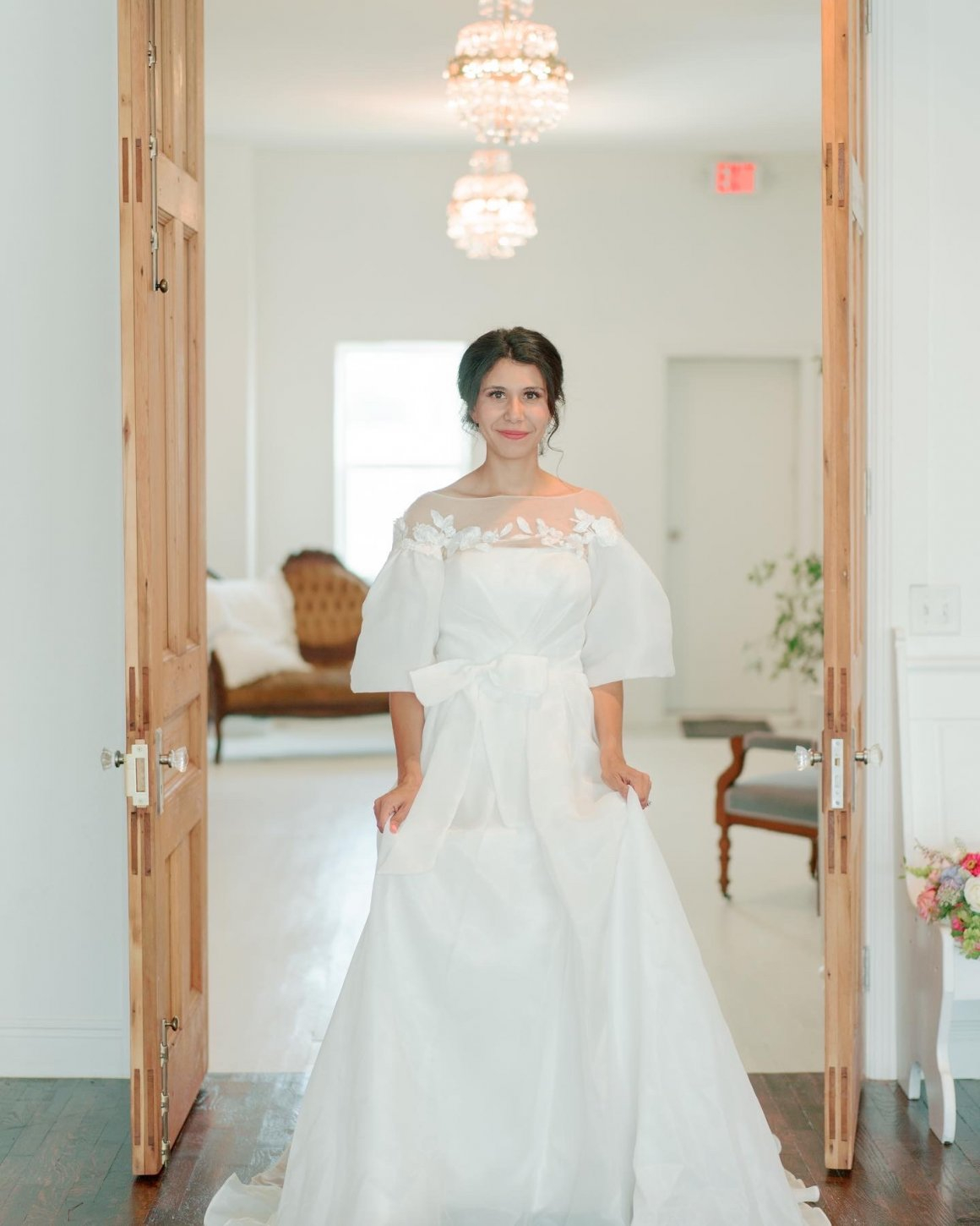 Built in the early 1900’s, this once grocery store, had seen better days. Our goal was to restore and keep as much of the original character as possible while making it a functional space to host small events. We kept as much of the original hardwood floors possible, added antique gas station lights in the main hall, chandeliers in the suite, 1800’s pine doors from St. Louis, an antique hardware cabinet from Prairie Grove, and removed plaster to uncover the gorgeous chimney.