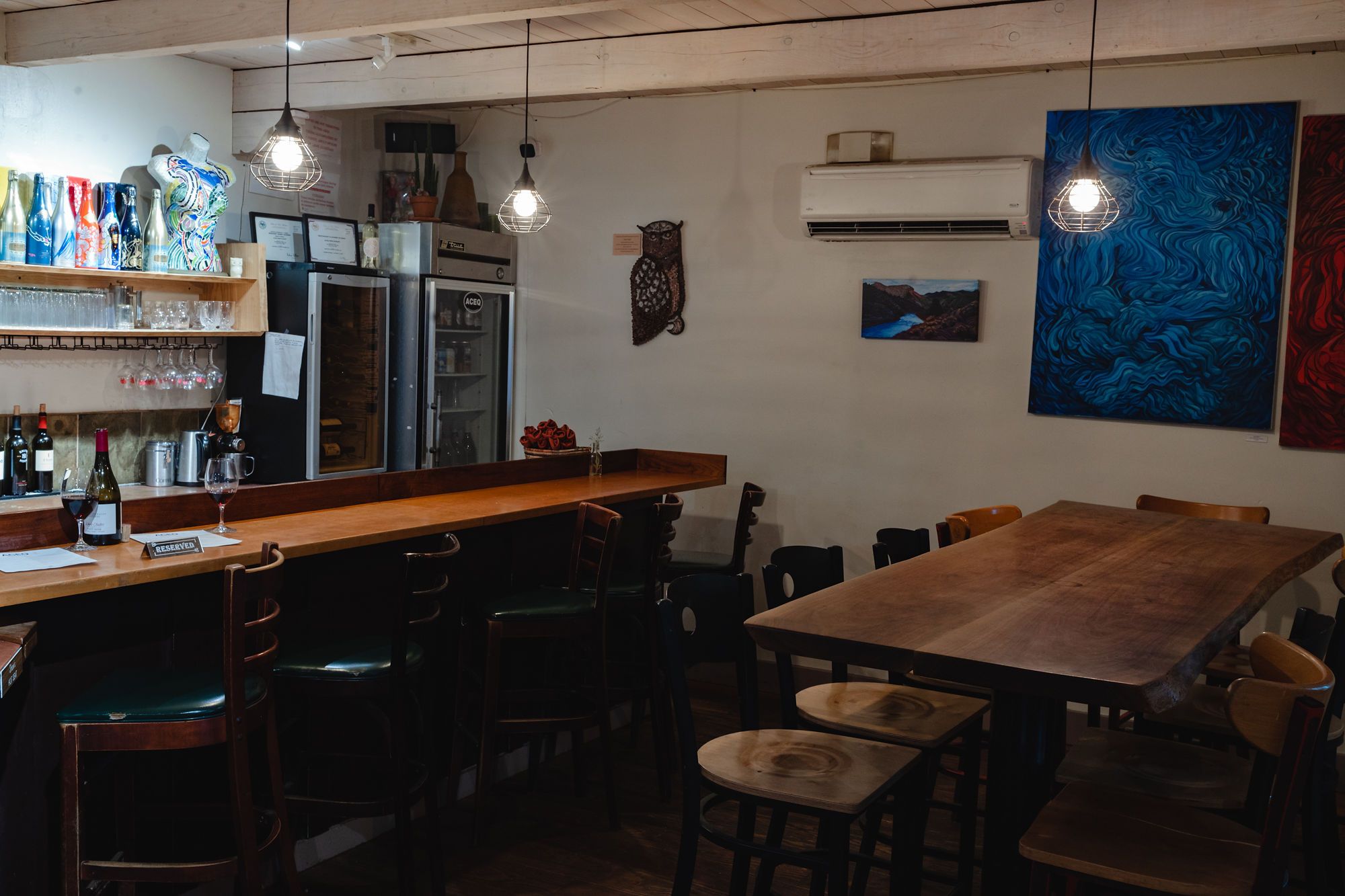 located in the heart of charming Arroyo Seco, ACEQ restaurant is unique and eclectic. Chef and Owner Elijah Safford takes pride in sourcing the best quality ingredients, eclectic and exciting wines, craft beers and fantastic cocktails. At the young age of 23 Chef Safford has managed to take ACEQ to new heights. Backed by a team of service industry veterans and professionals, ACEQ strives for true quality service and experience. The art and passion that ACEQ represents can be felt the minute you walk through the door. When you join us, there are a few things you can not miss out on, locally sourced Wangus steaks, the Whisky Basil cocktail and of course the Bison Chile Fries. ACEQ has food for everyone. Any dietary restriction will find something tasty. Don't be afraid to strike a conversation with your server and allow them to guide you through your experienceReservations are always recommended. We look forward to seeing you soon.