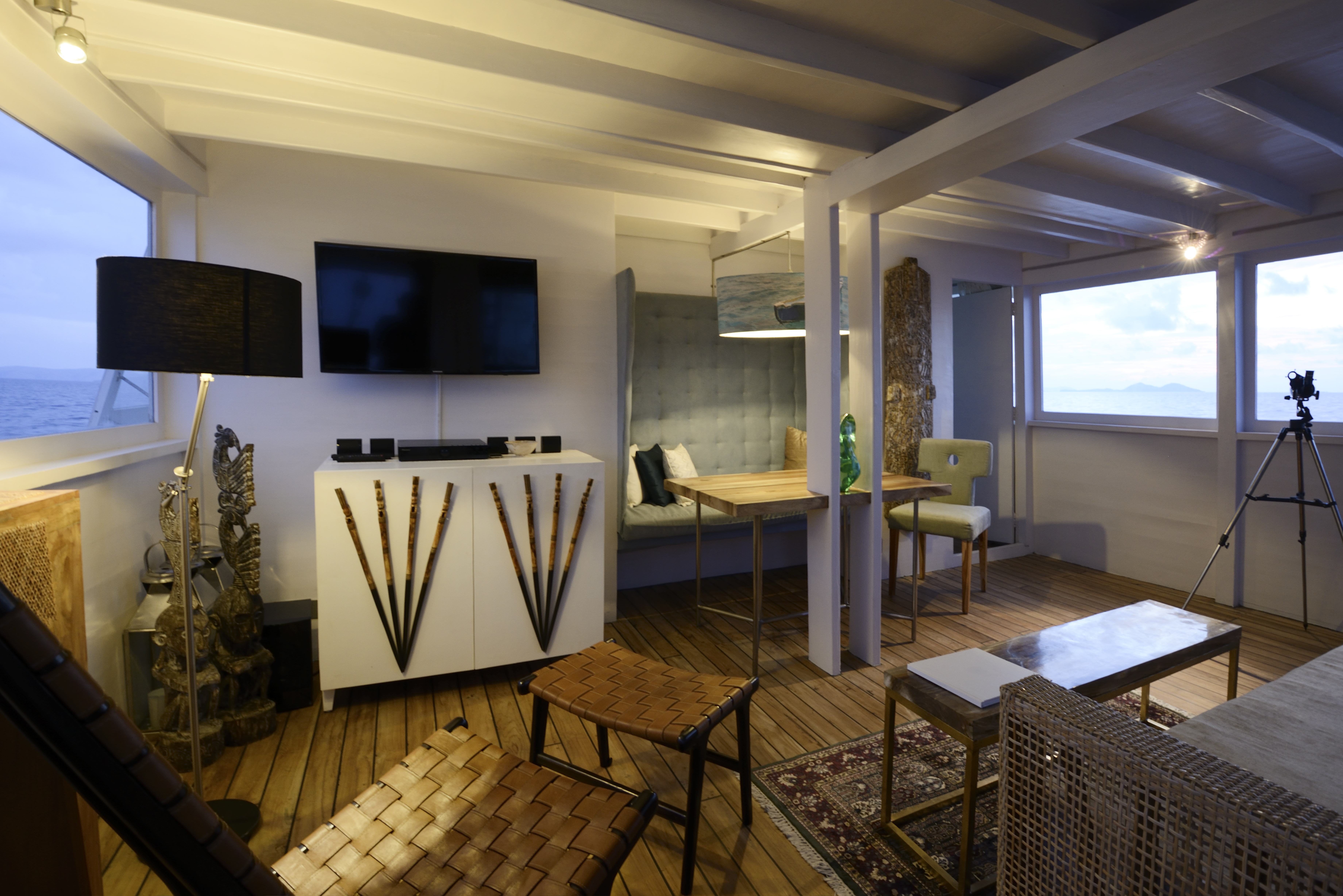 Of traditional Phinisi (pi-ni-si) boat design and with a colourful and exotic history, the Alexa once carried cargos of spices between Sumba, Flores, Sumbawa and Sulawesi. She is now docked in Flores, where cruises customarily begin. Itineraries are entirely flexible and if guests want a send-off party with friends in Bali, for example, the journey may start there. The boat can motor or sail or a combination of both depending on conditions or guest preferences. The ship's 7 international and multilingual crew includes a Cruise Director who is a certified dive instructor, a Resident Spa Therapist, Private Chef and Captain with 15 years navigating experience.