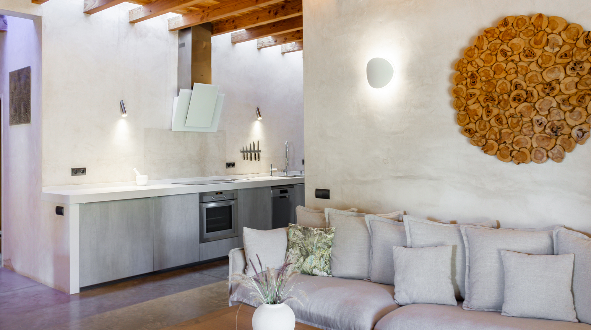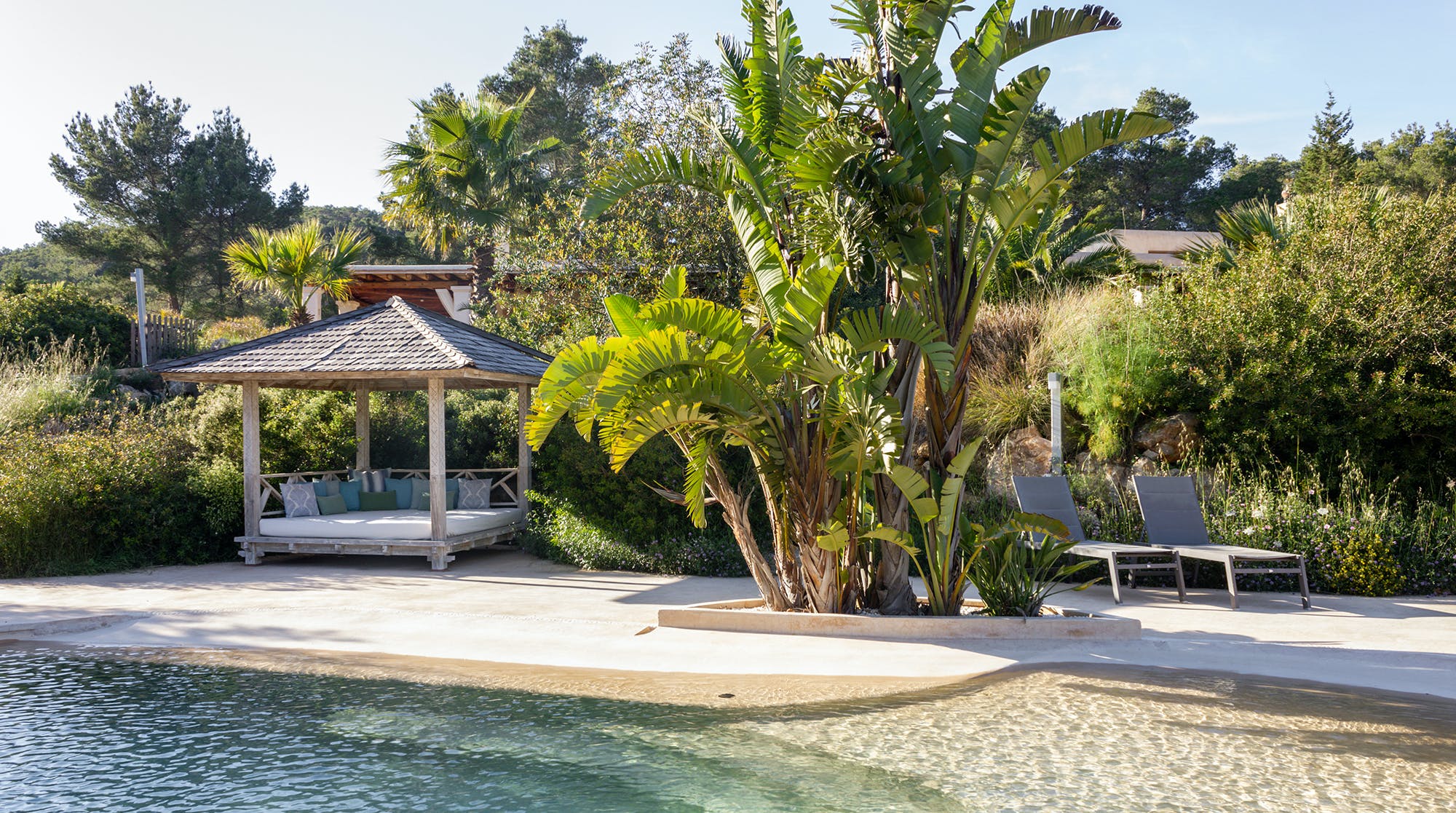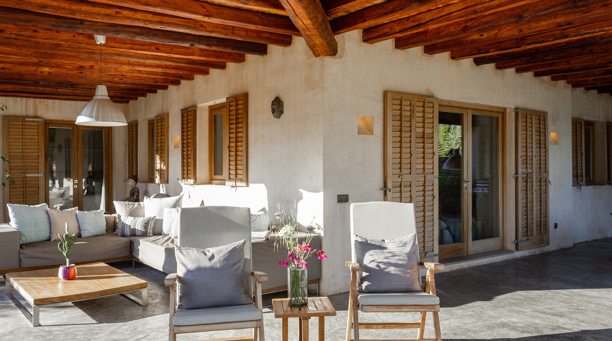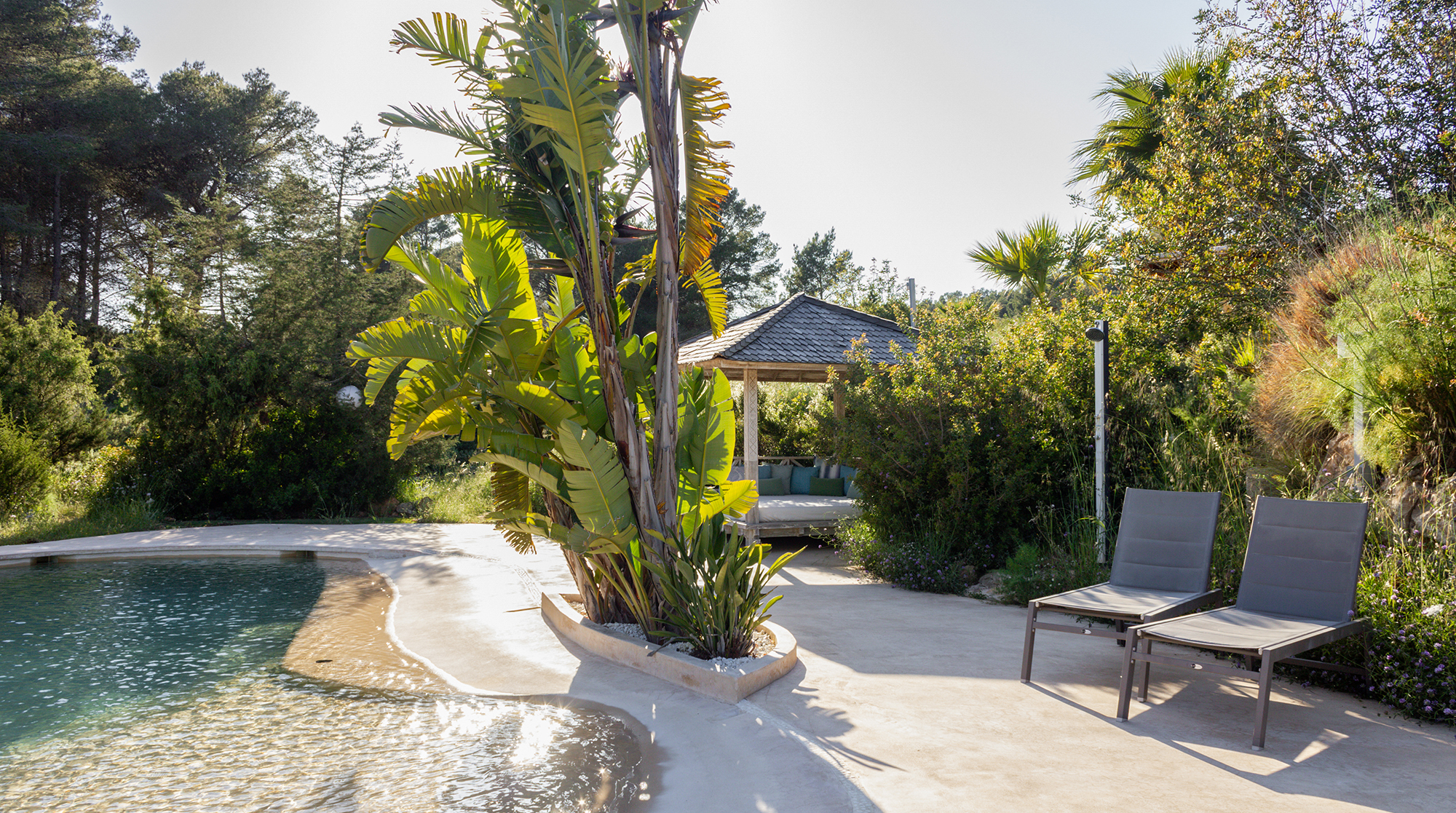 Nestled in the wild, untouched beauty of northwest Ibiza, this home promises tranquillity with breathtaking scenery to boot. You'll find it tucked away in the quaint village of Santa Agnès, a fifteen-minute drive from the coast. This peaceful pocket of the island offers a laid-back vibe and authentic charm year-round. Though, we recommend visiting in January and February to witness the valley during the almond blossom season.Built using eco-friendly materials and powered by renewable energy, this home's strong green credentials make it the perfect base for those looking to tread lightly on their travels. Inside, contemporary amenities and stylish decor promise a want-for-nothing stay. We love the open-plan living area, with its sleek fully-equipped kitchen and cosy lounge, complete with a wood-burning stove.We love this home's gorgeous outdoor space. Here, lush gardens frame the sun-drenched patio and pool, providing the perfect space to unwind in the splendour of your surroundings. Spend your days relaxing poolside or sprawled in the shade on one of the comfy lounge chairs. On balmy evenings, gather beneath the shaded dining area for a cookout and cocktails at sunset.