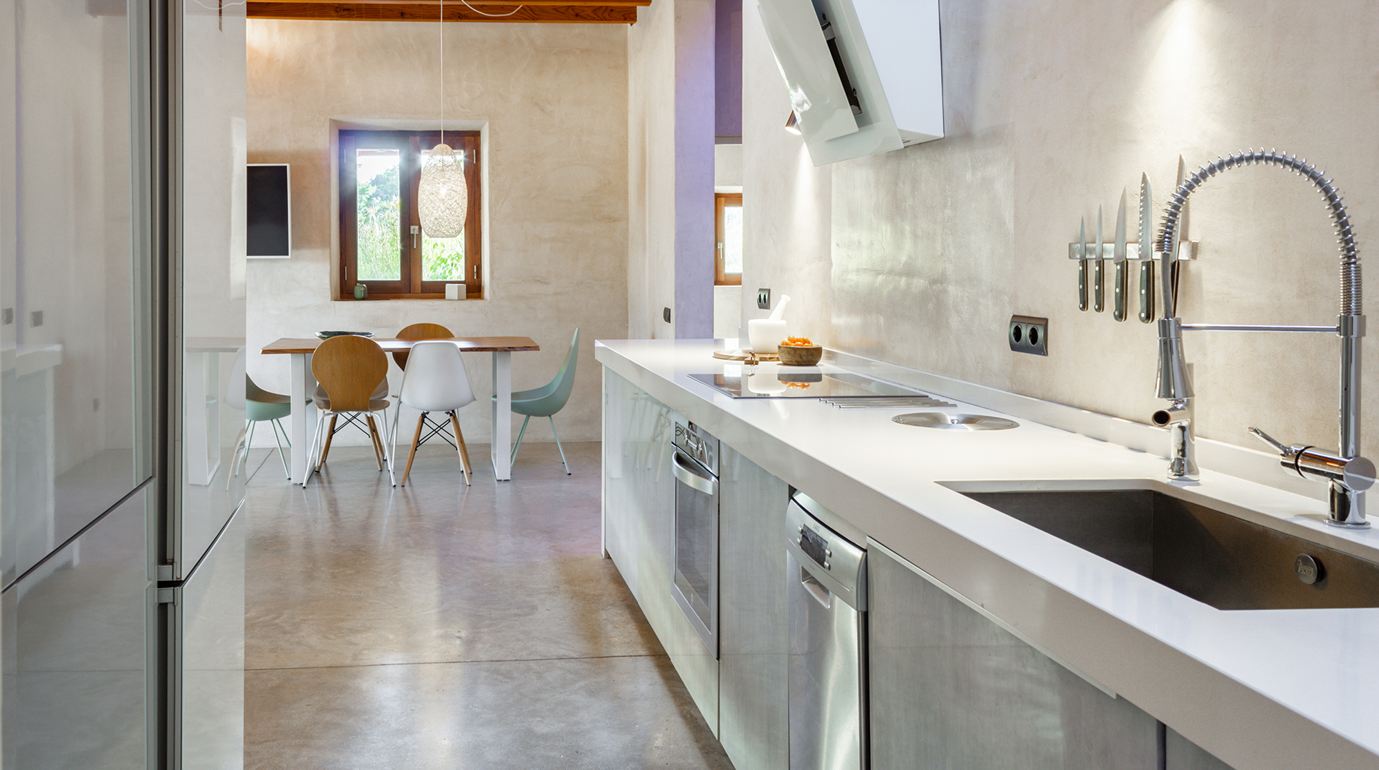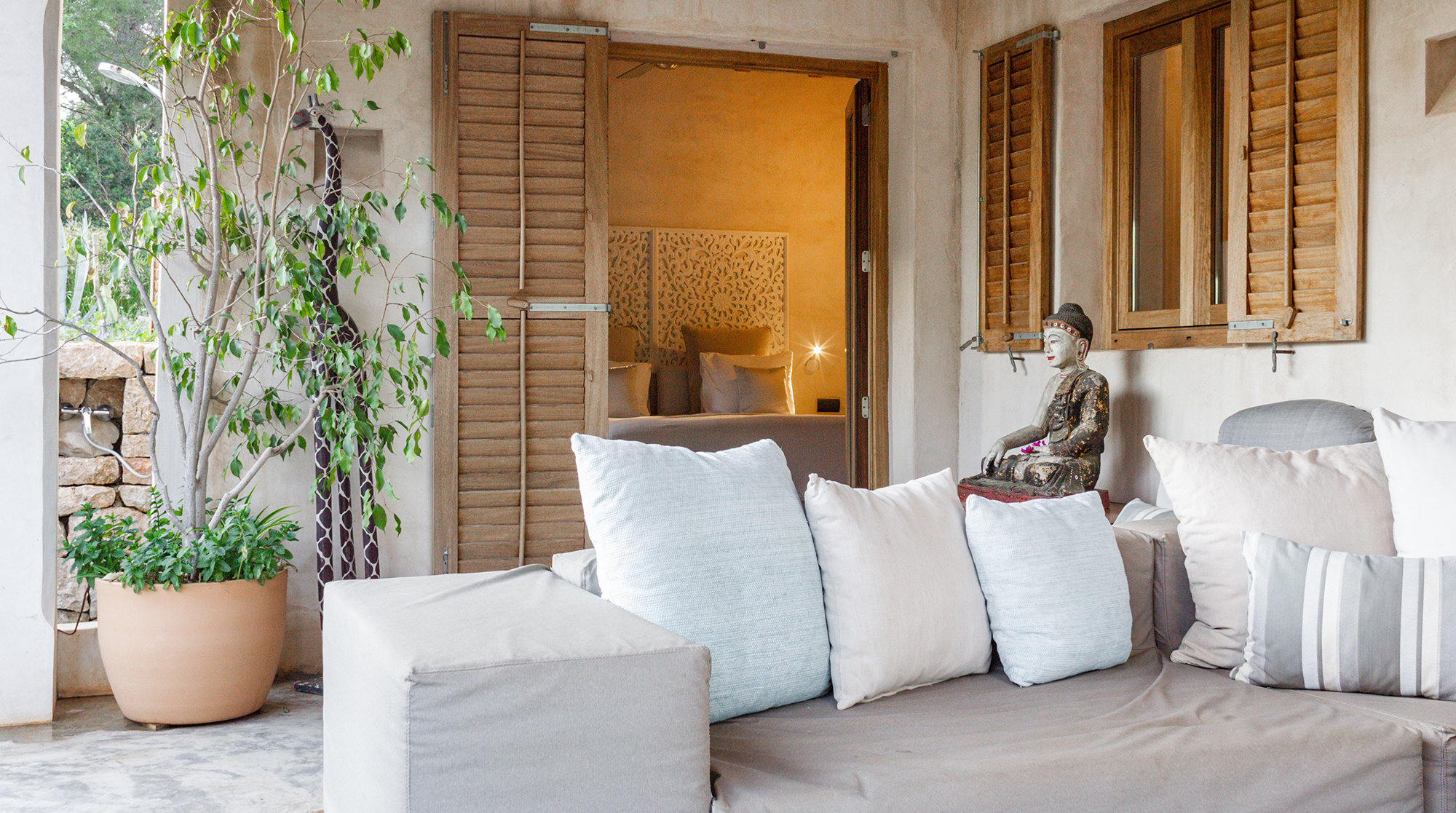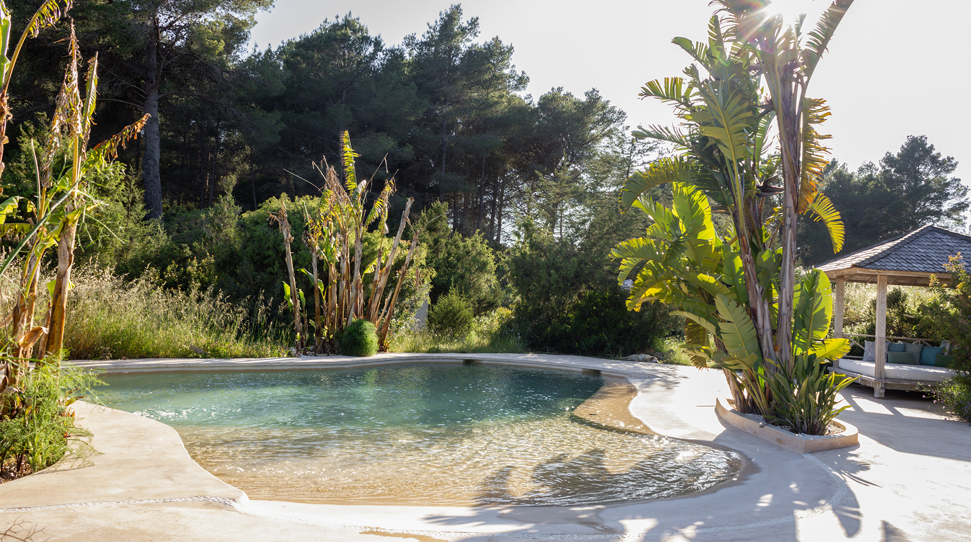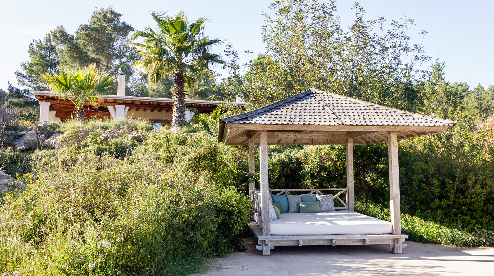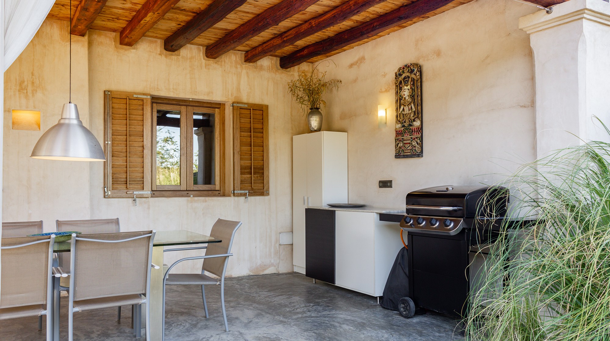Nestled in the wild, untouched beauty of northwest Ibiza, this home promises tranquillity with breathtaking scenery to boot. You'll find it tucked away in the quaint village of Santa Agnès, a fifteen-minute drive from the coast. This peaceful pocket of the island offers a laid-back vibe and authentic charm year-round. Though, we recommend visiting in January and February to witness the valley during the almond blossom season.Built using eco-friendly materials and powered by renewable energy, this home's strong green credentials make it the perfect base for those looking to tread lightly on their travels. Inside, contemporary amenities and stylish decor promise a want-for-nothing stay. We love the open-plan living area, with its sleek fully-equipped kitchen and cosy lounge, complete with a wood-burning stove.We love this home's gorgeous outdoor space. Here, lush gardens frame the sun-drenched patio and pool, providing the perfect space to unwind in the splendour of your surroundings. Spend your days relaxing poolside or sprawled in the shade on one of the comfy lounge chairs. On balmy evenings, gather beneath the shaded dining area for a cookout and cocktails at sunset.