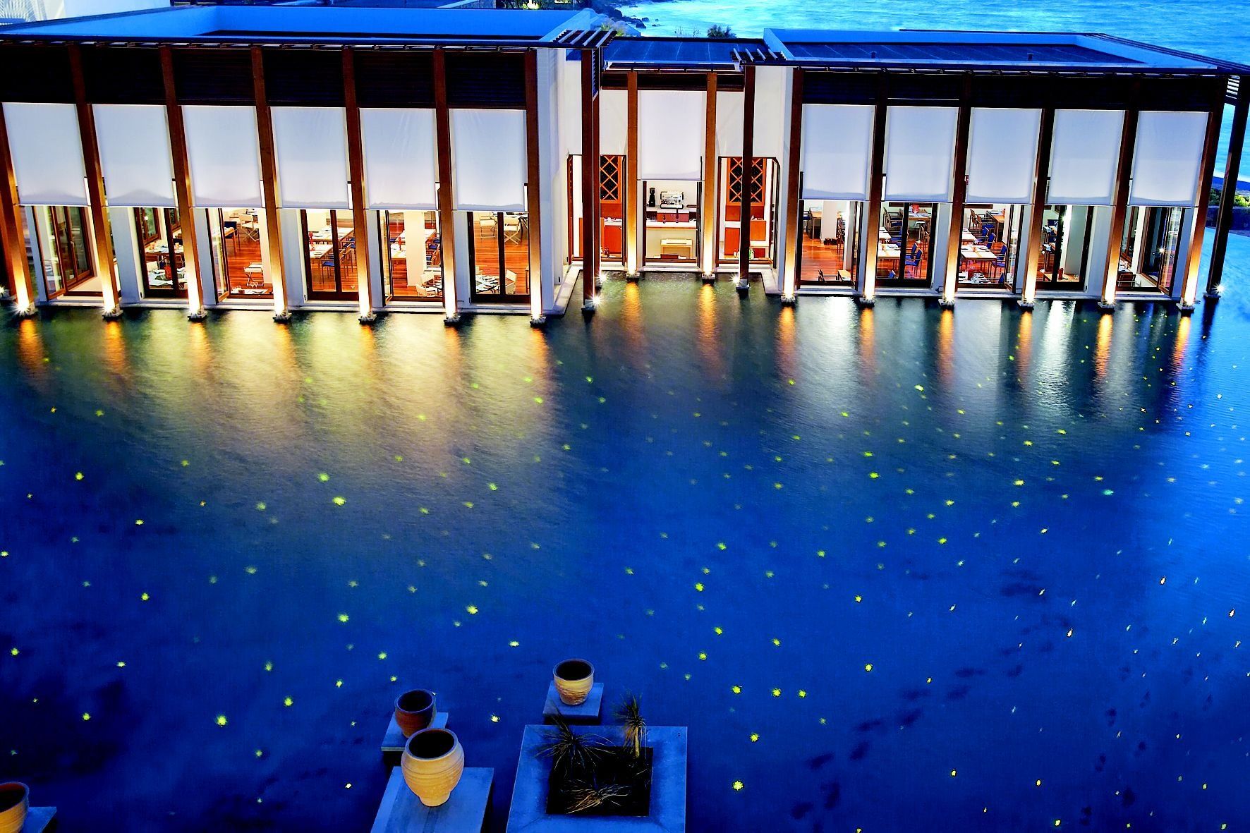 Amirandes Main Restaurant serves traditional Mediterranean cuisine combined with international delicacies for breakfast or dinner, while guests can also enjoy international gourmet dishes at the impressive setting of Lago Di Candia Restaurant. A variety of Italian dishes are served at the uniquely decorated Minotaur restaurant, where guests can enjoy the amazing collection of genuine Picasso ceramics adorns. A poolside, a lagoon and a beachside bar are also available on site.